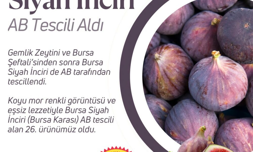 Tarım ve Orman Bakanı İbrahim Yumaklı, sosyal medya hesabından yaptığı açıklamada, “Bir güzel haber de Bursa siyah incirinden geldi. Bursanın siyah inciri, Gemlik zeytini ve Bursa şeftalisinden sonra AB tarafından tescillenen bir başka Bursa lezzeti oldu. Böylelikle ABden tescilli ürün sayımız 26ya yükseldi. Dün söylemiştik listeye yenilerin ekleneceğini. Devamı da gelecek” dedi. Yumaklı, dün de Konyada yetişen Hüyük çileğinin AB tescili aldığını duyurmuştu.
