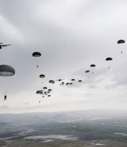 Milli Savunma Bakanlığı, Kara Kuvvetleri Komutanlığına bağlı 1inci Komando Tugayı Komutanlığı tarafından düzenlenen ve 13 ülke askerinin fiilen katıldığı Erciyes-2025 tatbikatından, komandoların paraşütle atladığı görüntüleri, sosyal medya hesabından paylaştı.