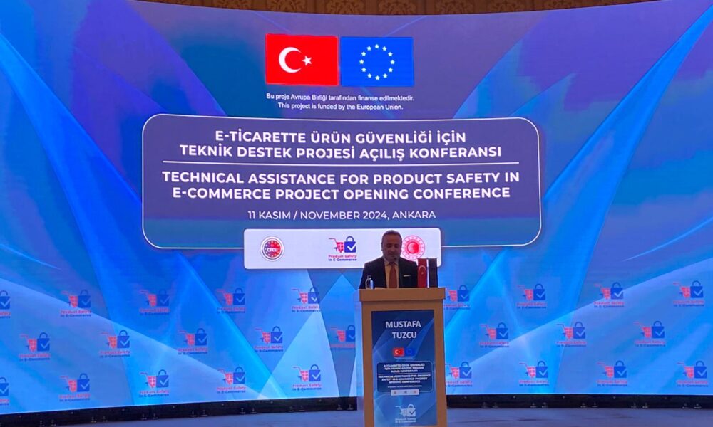 Ticaret Bakanı Yardımcısı Mustafa Tuzcu ise e-ticaret sektörünün hızla büyüdüğünü ve tüketici güvenini artırmanın önemli olduğunu vurgulayarak, “Avrupa Birliği gibi Türkiyede de e-ticaret ciddi büyüyor ve geçtiğimiz yıl 500 milyar TLnin üzerine çıktı ve daha da artmasını bekliyoruz. Türkiye ekonomisi gibi Avrupa Birliği ekonomisinin de itici gücü haline gelmeye başladı ve bu alanda da Avrupa Birliği kendi elektronik ticaretiyle ilgili olarak teknik altyapısını oluşturdu. Türkiye de bununla ilgili olarak e-ticaretin büyümesine eşlik edecek ve küresel ticaretten daha fazla pay alan, e-ticaretle ilgili olarak aksiyonlarını daha hızlı atmak zorunda kalacak. Biz de ürün güvenliği alanında çözüm üretilmesinin zorunlu olduğunu görerek, e-ticaretin güvenli hale gelmesi için bu altyapının geliştirilmesi için çalışmaya devam ediyoruz” diye konuştu.
