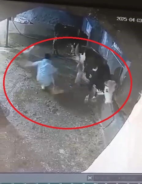 Bakımını yaptığı inek, besiciyi tekmeledi; o anlar kamerada
