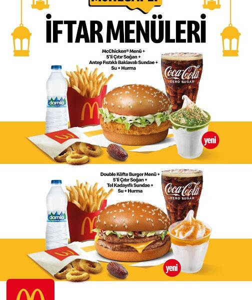 İki yeni Sundae lezzeti, ramazana özel McHesaplı İftar Menülerinde de yer alıyor. 325 TLlik seçenekte McChicken Menü; 5li Çıtır Soğan, Antep Fıstıklı Baklavalı veya Tel Kadayıflı Sundae, su ve hurma ile birlikte sunuluyor. 350 TLlik seçenekteyse Double Köfte Burger Menüye 5li Çıtır Soğan, Antep Fıstıklı Baklavalı veya Tel Kadayıflı Sundae, su ve hurma eşlik ediyor.