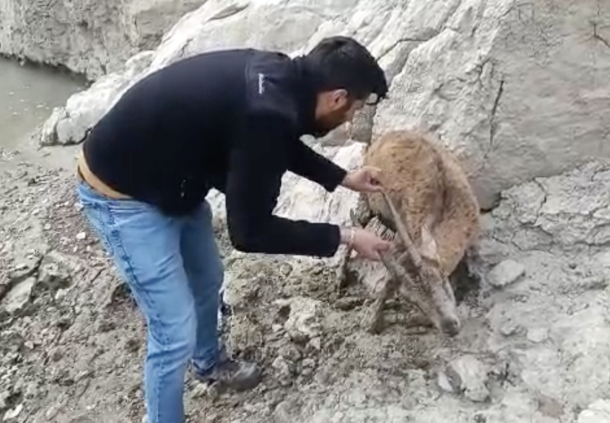 Kemaliye ilçesi Şırzı Köprüsü civarında su kenarına inen dağ keçisi, balçığa girince daha çıkamadı. Keçinin balçığa saplandığını gören Şevket Gültekin, Görkem Oğuz ve Ahmet Öztürk, Karanlık Kanyondan bot ile balçığa ulaştı. Bottan inen 3 arkadaş, yanlarında getirdikleri iple keçiyi mahsur kaldığı yerden kurtardı. Balçıktan temizlenen keçi, yeniden doğal ortamına bırakıldı.