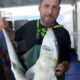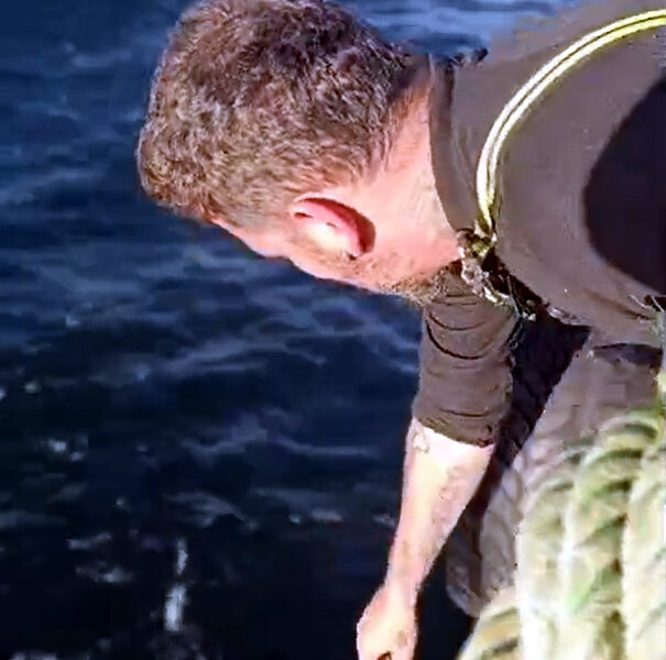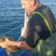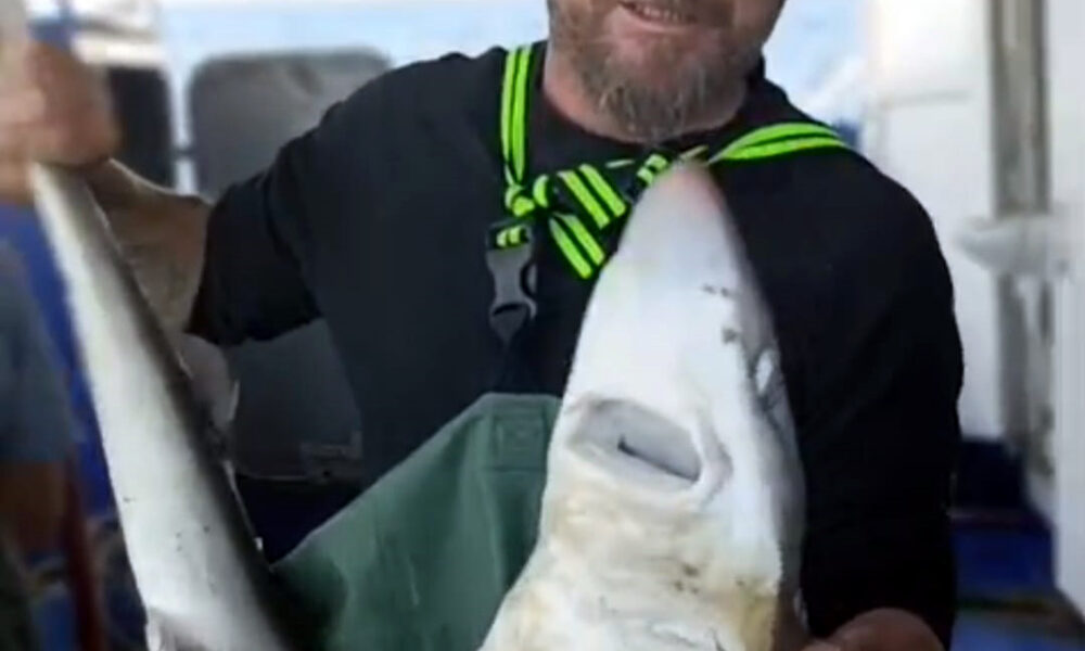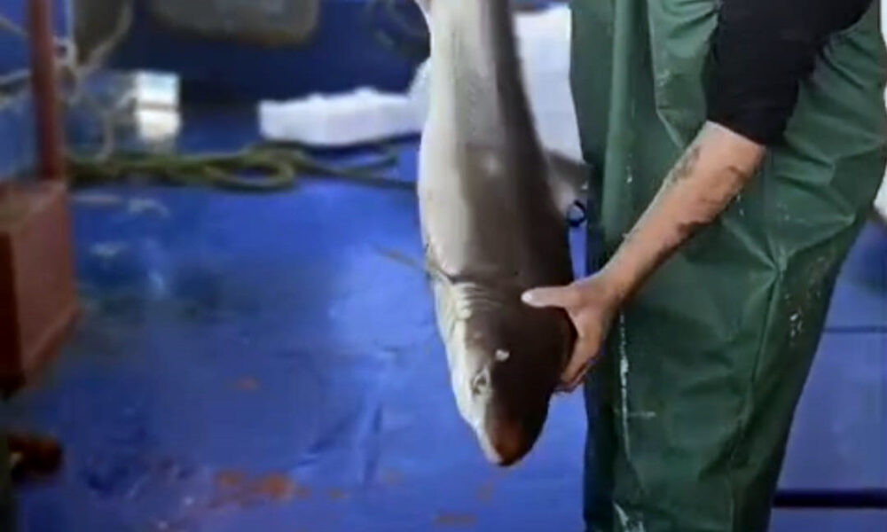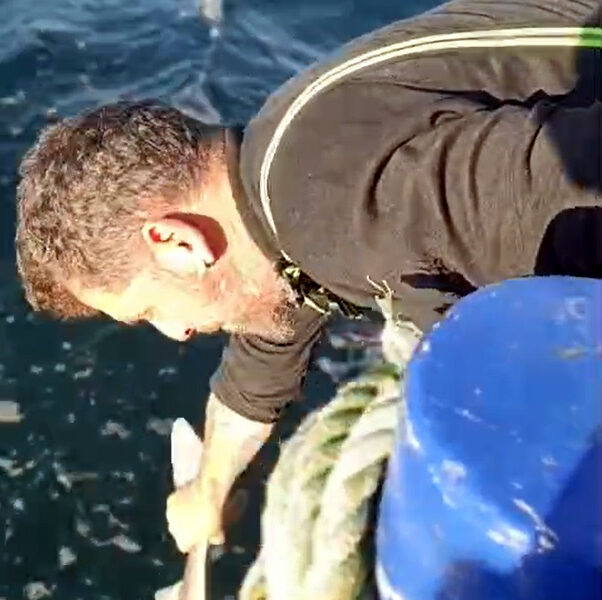 Balıkçı, ağına takılan camgöz köpek balığını yeniden suya bıraktı
