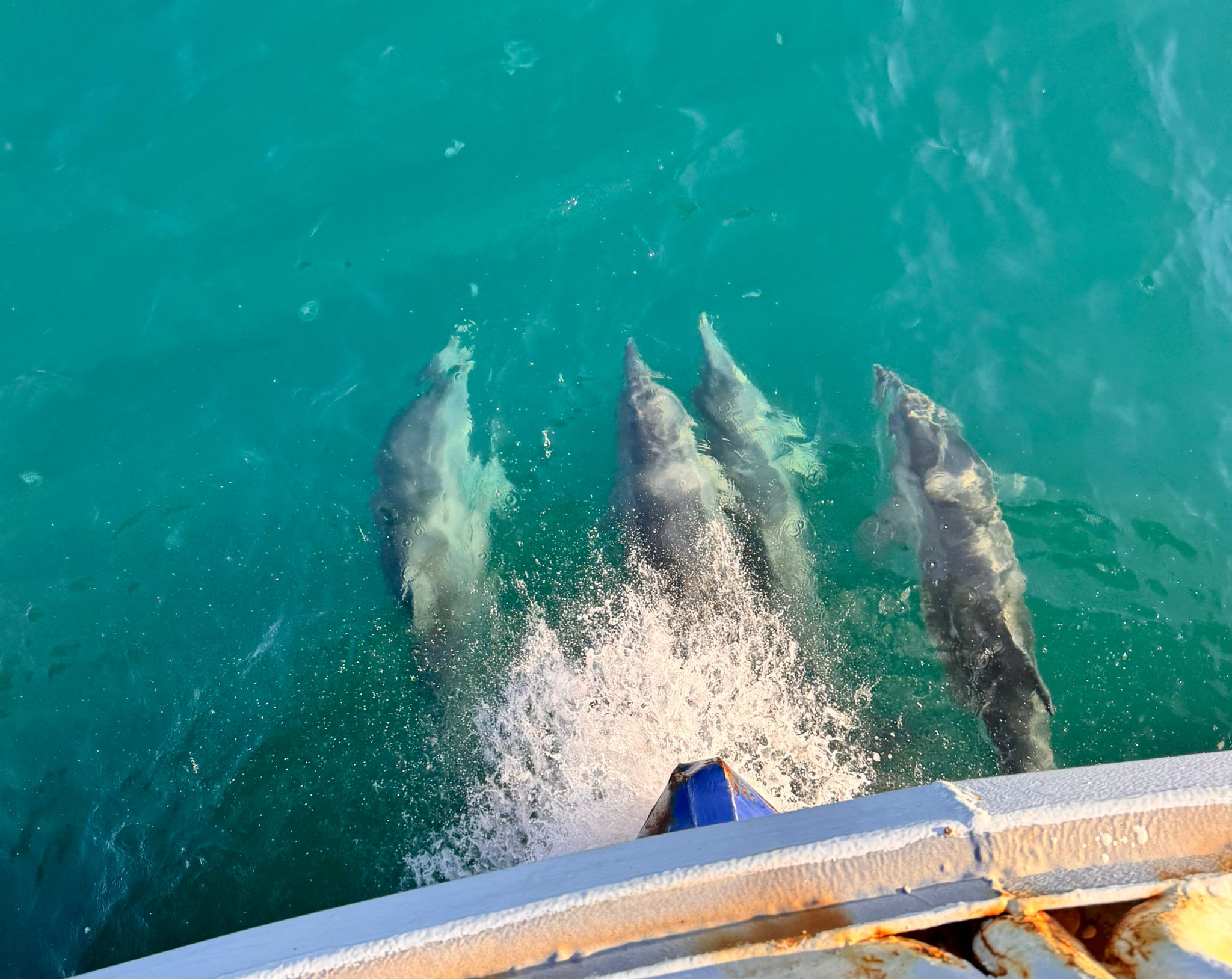 Balıkçı teknesine eşlik eden yunuslar kamerada