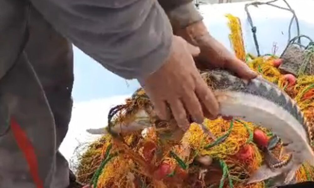 Balıkçıların ağına takılan mersin balığı, doğal ortamına bırakıldı