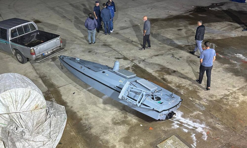 Çarşıbaşı ilçesi açıklarında tekneyle avlanan balıkçılar, gece saatlerinde deniz yüzeyinde insansız deniz aracı fark etti. Balıkçılar, aracı bağladıkları tekneyle kıyıya çekti. Yoroz Limanı’na yanaşan balıkçılar, durumu Sahil Güvenlik ekiplerine haber verdi. Ekipler, menşei belirlenemeyen deniz aracı için güvenlik şeridi çekerek liman giriş ve çıkışlarını kapattı. Çevrede de güvenlik önlemleri alınırken, deniz aracının incelenmesi için İstanbul’dan özel ekip talep edildi. İlk incelemelerde insansız deniz aracının Ukraynaya ait olabileceği şüphesi üzerinde durulurken, uzman ekibin de ilçeye gelmek üzere yola çıktığı belirtildi.