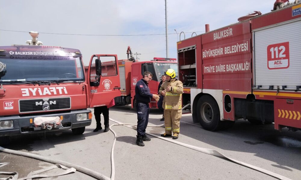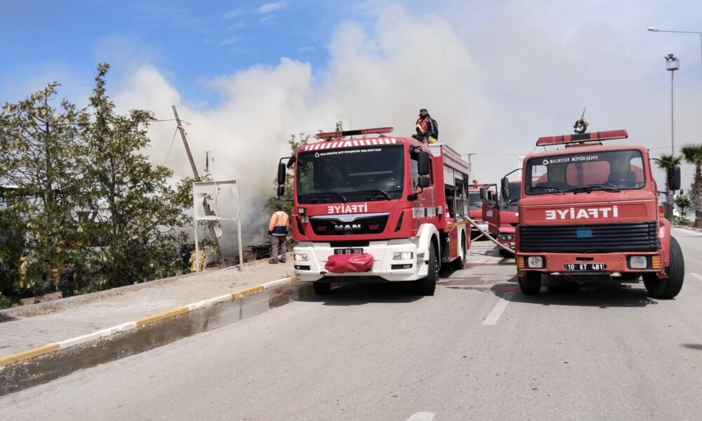 Balıkesir’de kereste deposunda çıkan yangın, bitişikteki atölyeye sıçradı