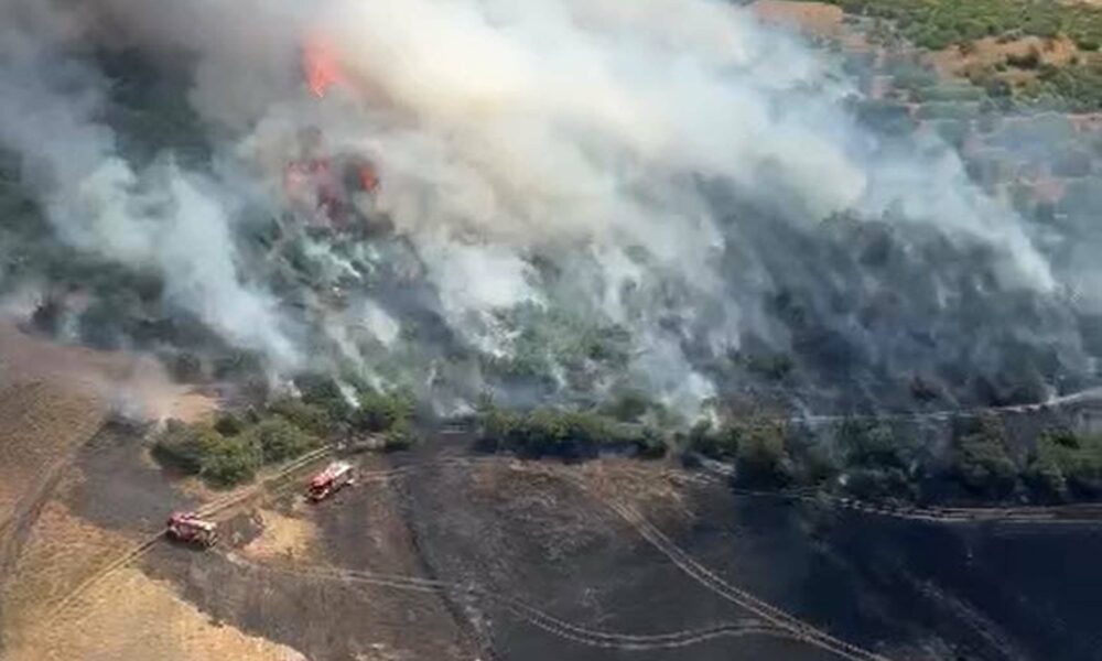 • Balıkesir'in Altıeylül ilçesinde orman yangını çıktı. Ekipler, yangına havadan ve karadan müdahale ediyor. Fotoğraf: Balıkesir, (DHA)