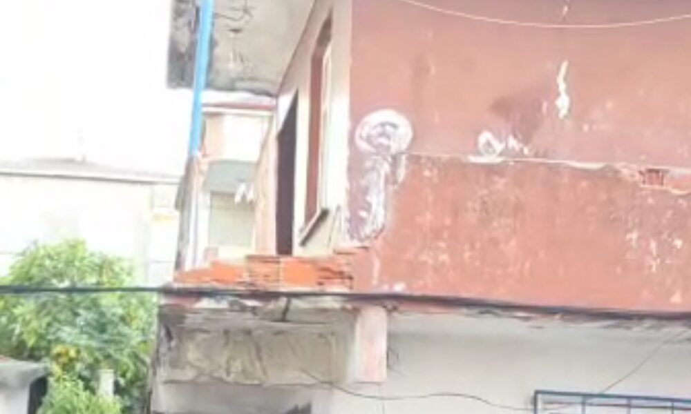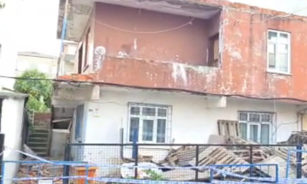 Balkon duvarının bir bölümü yıkılan 2 katlı bina boşaltıldı