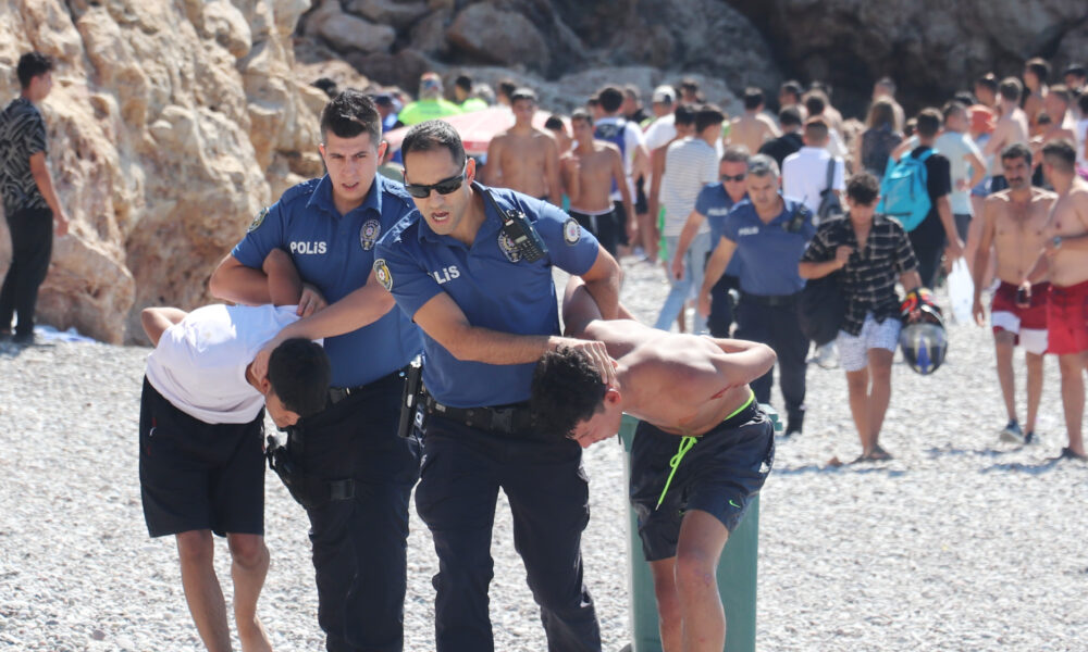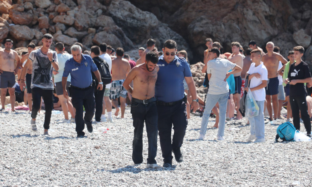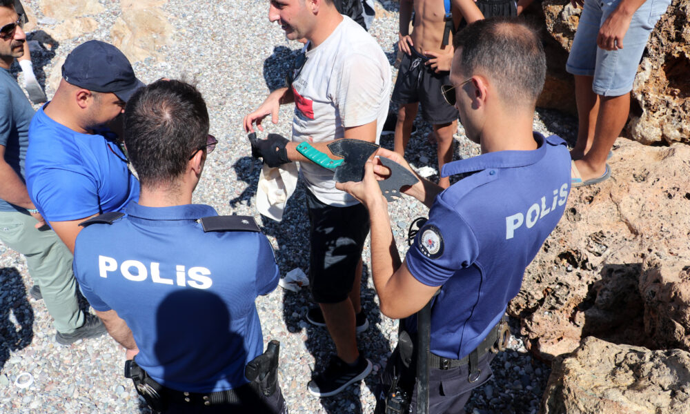 Olay, saat 10.30 sıralarında Muratpaşa ilçesi Konyaaltı Beach Park girişinde meydana geldi. Kimliği öğrenilemeyen bir kişi, denizde yüzdüğü sırada cep telefonunu çaldıkları gerekçesiyle 5 kişiyle tartışmaya başladı. İddiaya göre, telefonu sahibine vermek için 4 bin TL isteyen 5 kişi ile telefon sahibi arasındaki tartışma büyüdü. Durumun 112 Acil Çağrı Merkezine bildirilmesi üzerine olay yerine sivil polis ekipleri yönlendirildi. Gelen ekipler, şüpheli 5 kişinin kendilerine neşter ve küçük kamp baltasıyla direnmesi üzerine takviye ekip talebinde bulundu. Bunun üzerine bölgeye çok sayıda resmi ve sivil polis ekibi sevk edildi. Polise direnmeyi sürdüren 5 kişi, takviye ekiplerin gelmesiyle biber gazıyla etkisiz hale getirilerek kelepçelendi. Polis, 5 kişinin üzerinden çalındığı iddia edilen cep telefonu çıkmayınca, olayın yaşandığı bölgede ve kayaların arasında bir süre arama yaptı ancak sonuç elde edemedi. Polis, şüphelilerin kullandığı baltaya el koyarken, neşteri ise aramaya rağmen bulamadı.