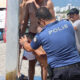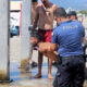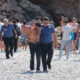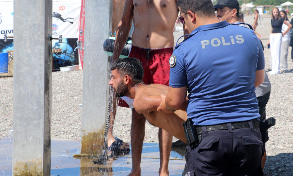 Diğer yandan kelepçelenen şüphelilerden biri, biber gazından etkilendiğini ve nefes darlığı olduğunu söylemesi üzerine bir polis memuru tarafından sahildeki duş noktasına götürüldü. Burada polisin suyla yüzünü yıkadığı şüpheli ile diğerleri ekip otosuna alınarak emniyete götürüldü.