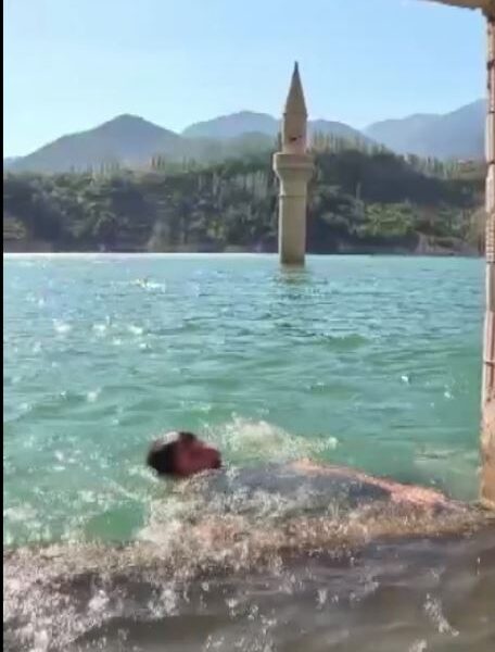 Baraj gölüne dalıp, anılarını hatırlayan İnce, çok duygulandığını belirterek, “2022’de su tutan ve şimdilerde enerji üreten Yusufeli Barajı’nda, vadi içerisinde kalan ilçemiz ve köylerimiz sudan etkilenmişti. Şu anda da onlardan biri olan Çeltikdüzü köyündeyiz. Çeltikdüzü köyünde arkamda görmüş olduğunuz batık minare var. Benzerine daha önce denk gelmiş olabilirler. Burası şu anda su altında kalan son bölge. Buraya geldiğimizde bir yandan yüzme keyfi yaşarken, diğer yanda da çok duygusal anlarda yaşıyoruz. İyi derecede yüzücüyüm, tabi ki burada yüzmeyi kimseye tavsiye etmem. Zamanında komşuların birbirine çay içmeye gidip geldiği yerlerde, suyun içerisinde bir balkondan diğer evin camına, çatıdan odalara dalarak anıları yad ediyorum” diye konuştu.