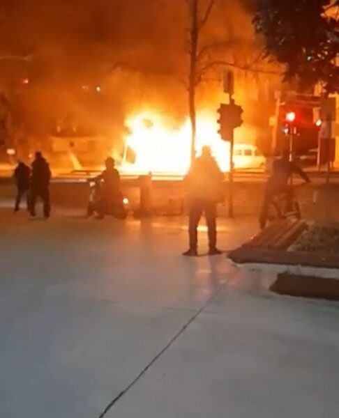 Yangın saat 20.00 sıralarında Osmangazi ilçesi Dikkaldırım Mahallesi Bent Caddesi’ndeki boş bir barakada çıktı. Yaz aylarında manav olarak kullanılan, kışın kapalı olan barakadan yükselen alevler, önünde park halinde bulunan 46 ACH 048 plakalı minibüs ile hafif ticari araca sıçradı. Hafif ticari aracın sürücüsü alevleri görünce gelip aracını çekerken, minibüs alevlere teslim oldu.