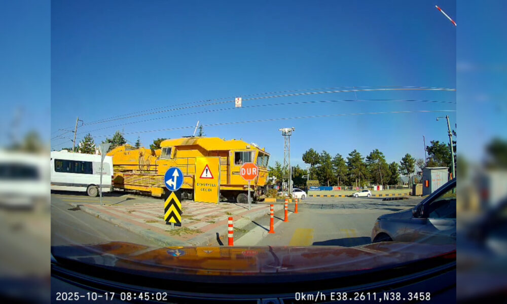 • Malatya'da hemzemin geçitte bariyerlerin erken açılması ile hareket eden okul servisi, geçmekte olan trenden saniyelerle kurtuldu. O anlar bir vatandaşın araç kamerasına yansıdı. Fotoğraf: Malatya,(DHA)