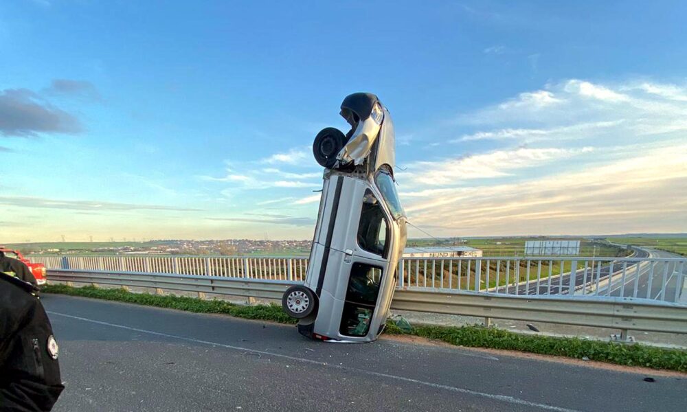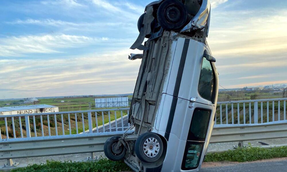 Bariyere çarpan hafif ticari araç, dik vaziyette kaldı: 2 yaralı