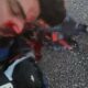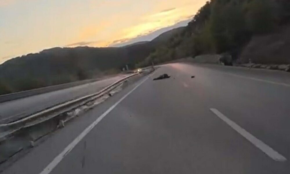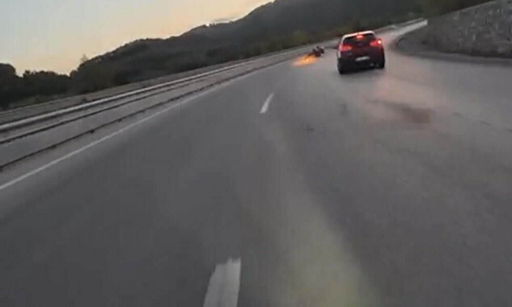 Bariyere çarpan motosikletin sürücüsü ağır yaralandı; kaza kask kamerasında