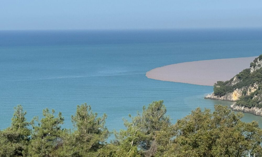 Bartın Irmağı’ndan akan çamurlu su nedeniyle denizin rengi değişti