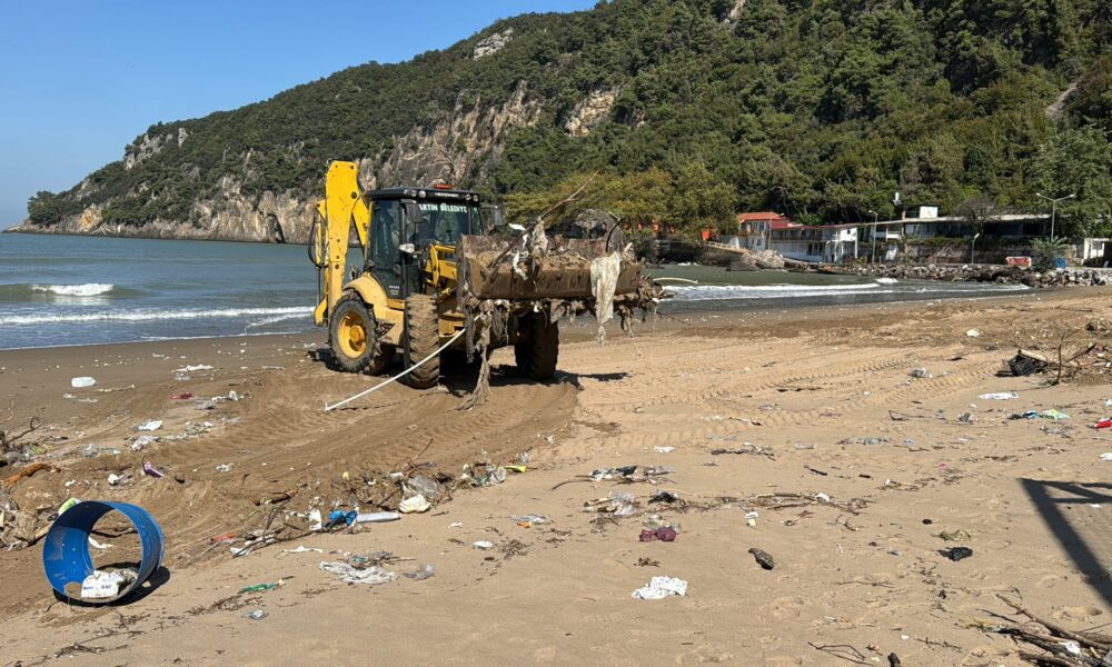 Bartın Irmağı’ndan gelen çöpler ve atıkların bulunduğu 3 kilometrelik İnkumu Plajı’nda Bartın Belediyesi ekipleri tarafından çalışma başlatıldı. İş makinası kumsalda bulanan çöpleri alarak, kamyona yükledi. Temizleme çalışmasının yarın da devam edeceği öğrenildi.