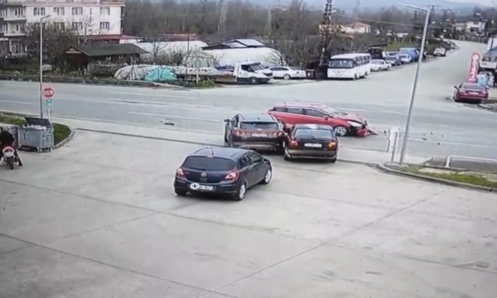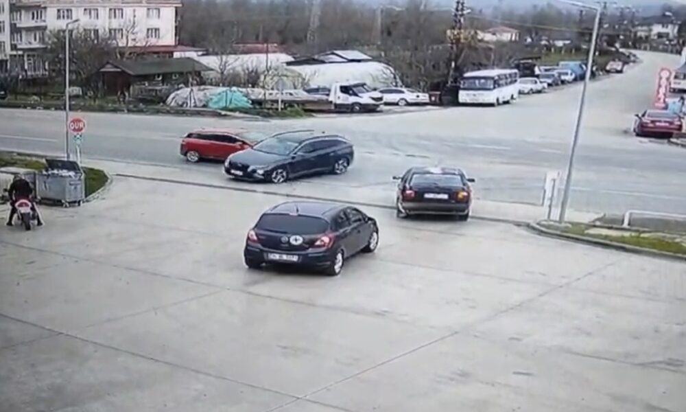 Bartın’da 3 aracın karıştığı kaza kamerada
