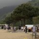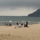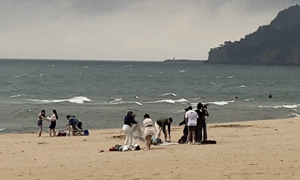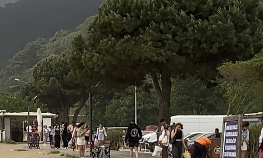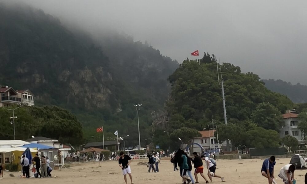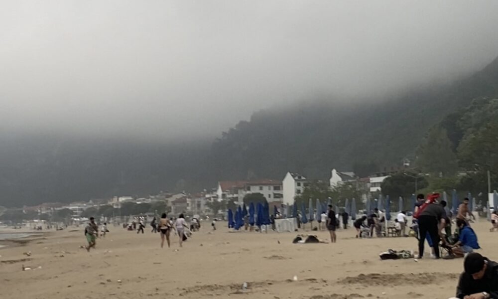 Öte yandan öğle saatlerinde hava sıcaklığının 35 dereceye ulaştığı mavi bayraklı İnkumu tatil beldesine giden vatandaşlar, şiddetli rüzgar nedeniyle panik yaşadı.