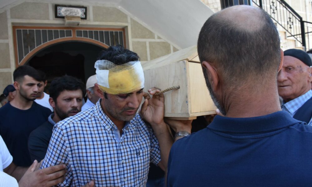 Başındaki sargıyla aynı kazada ölen kızının tabutunu omzunda taşıdı