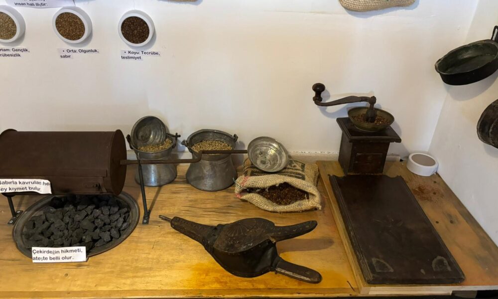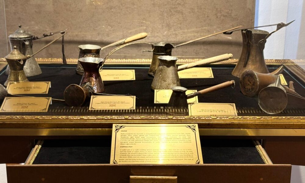Çelebi, müzede 100den fazla parça bulunduğunu kaydetti. Müzenin içeriğinin çok kapsamlı olduğuna işaret eden Çelebi, “Müzemizin girişinde, ziyaretçilerin ilgisini çeken küçük bir hediyelik eşya bölümü yer alıyor. Bir yarım kat yukarı çıkıldığında ise Abdülmecid döneminden kalma gümüş işlemeli fincanlar sergileniyor. Üst kata çıktığımızda ise kahve kültürüne dair eserlerin yer aldığı bir salon bizleri karşılıyor. Bu salonda, kahvenin Osmanlıya gelişinden itibaren kullanılan kavurma tavaları, el değirmenleri ve farklı dönemlere, ülkelere ait cezve formları gibi birçok özel parça bulunuyor. Cezvelerin yapısı, kullanılan malzemeler ve işçilikler, dönemin ustalığını yansıtan detaylarla birlikte sergileniyor. Sadece kahve değil, kahve sunumlarında yer alan bazı materyaller ve ‘kahve yancıları’ dediğimiz şeylerden bahsettik burada. Lokum ve şerbet kültürünü burada anlattık. Bunlar da Türk kahvesi ve kültürünü tamamlayan diğer parçalardır. Yine küçük bir hapishane konseptiyle kahvenin neden yasaklandığını, kahvehanelerin neden kapatıldığını, ulemaların verdiği haram fetvalarını, kahve içmenin yasaklanma sebeplerini yine burada anlattık. Fal kültüründen bahsettik. Aslında falın ne demek olduğunu ya da saray kültüründe fala verilen değeri, falın cezalarını yine bu müzede anlatmış olduk” ifadelerini kullandı.