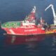 Batan gemideki mürettebat, rüzgardan havalanan brandaya bellerine bağladıkları kemer ile müdahale etmiş