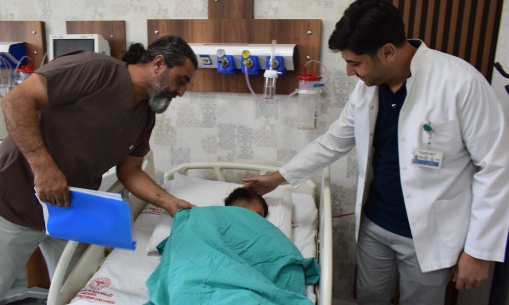 Batman Ağız ve Diş Sağlığı Hastanesi’nde son 1 yılda 371 hastanın lokal anesteziyle tedavisi yapılamayan rahatsızlıkları, genel anestezi ile tedavi edildi. (solda başhekim Masum Ekinci, hastaları ziyaret ederken) Fotoğraf: Bayram AYHAN/Batman,(DHA)