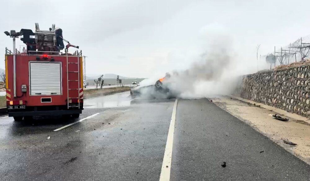 Batman’da refüje çarpan otomobil yandı; 2 yaralı