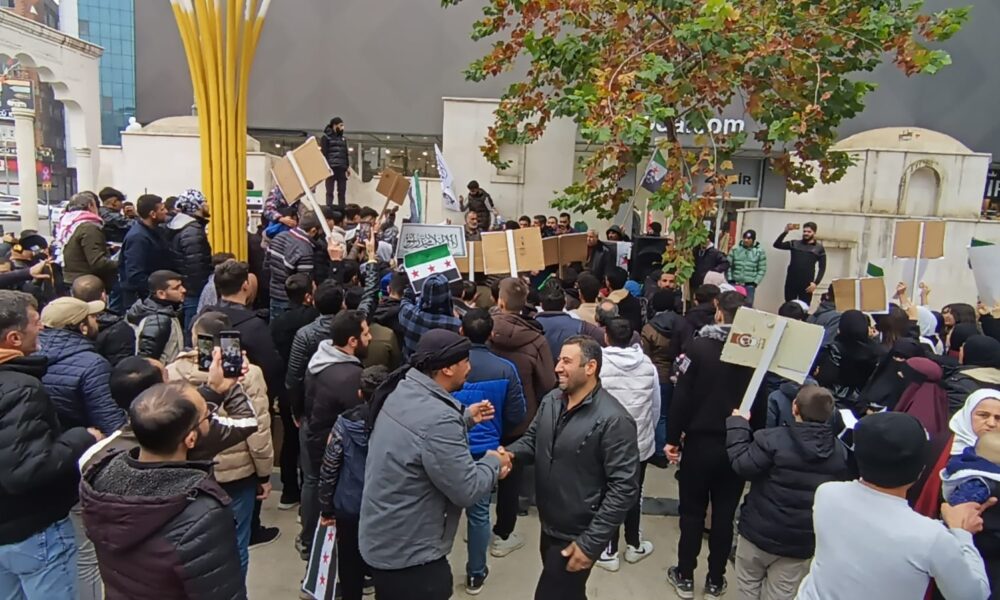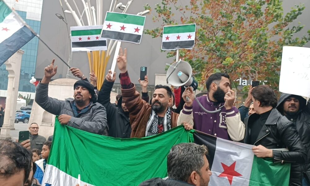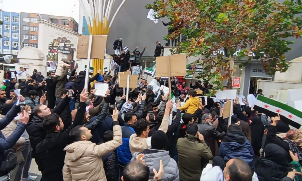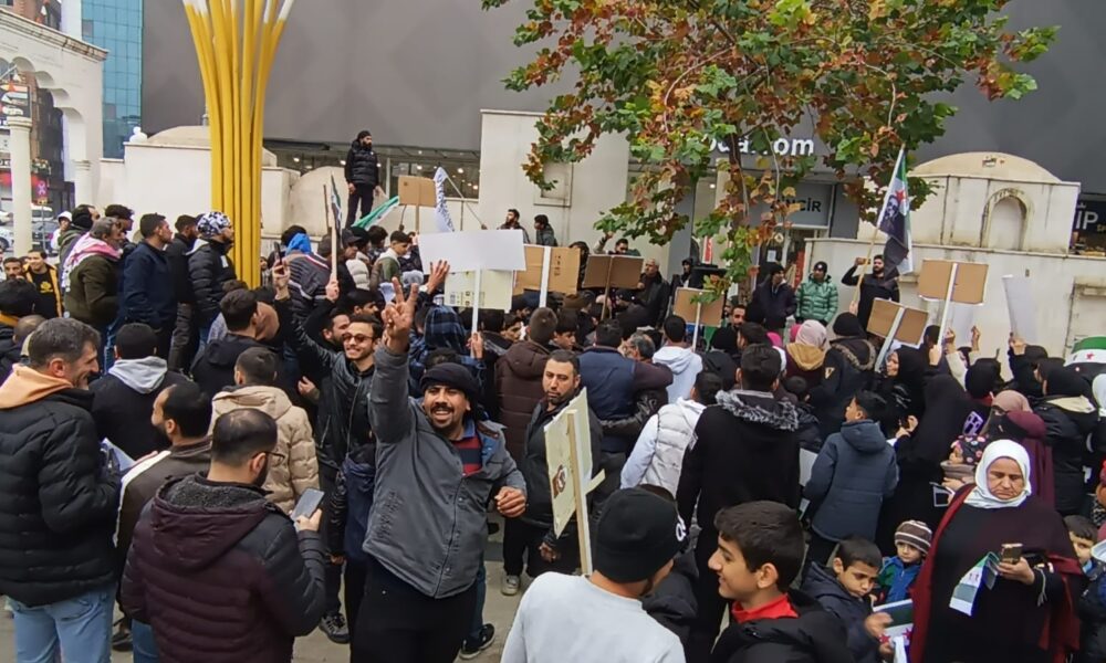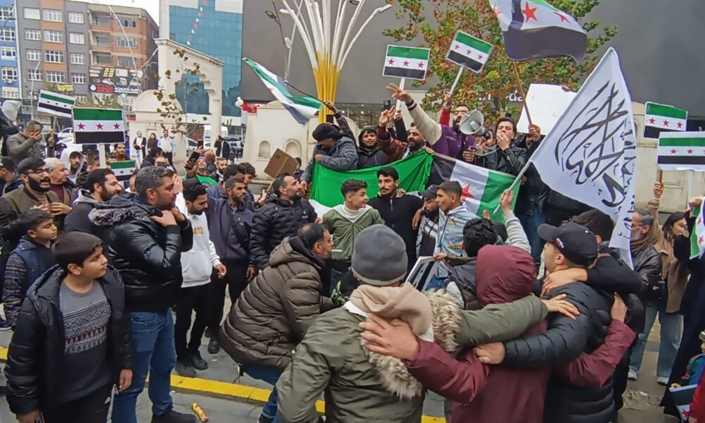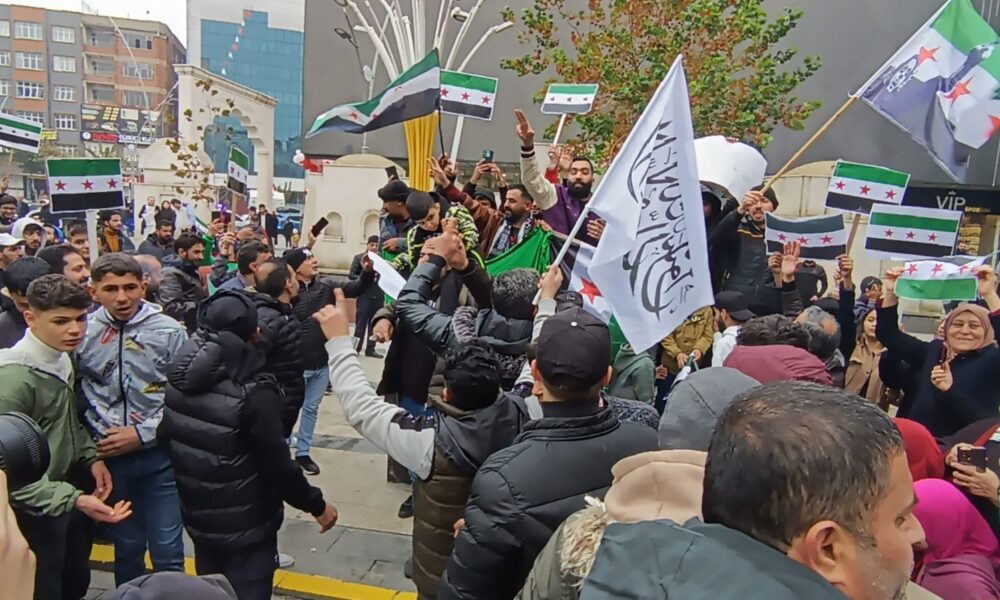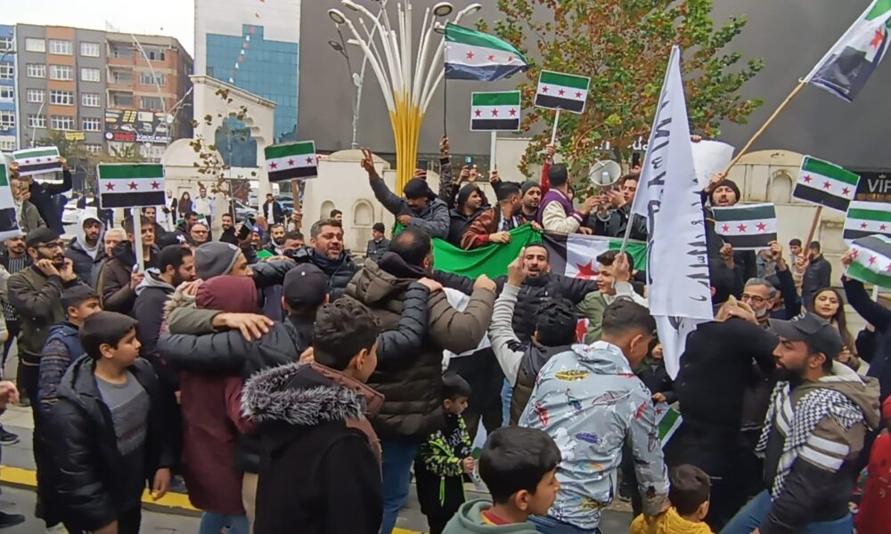 Gülistan Caddesinde toplanan Suriyeliler, muhalif grupların başkent Şam’a girmesi ve Beşar Esad yönetiminin kontrolü kaybetmesinin ardından kutlama yaptı. Özgür Suriye Ordusu bayrakları taşıyan grup, sık sık sloganlar attı. Polis ekipleri de herhangi bir olumsuzluk olmaması adına çevrede güvenlik önlemi aldı.