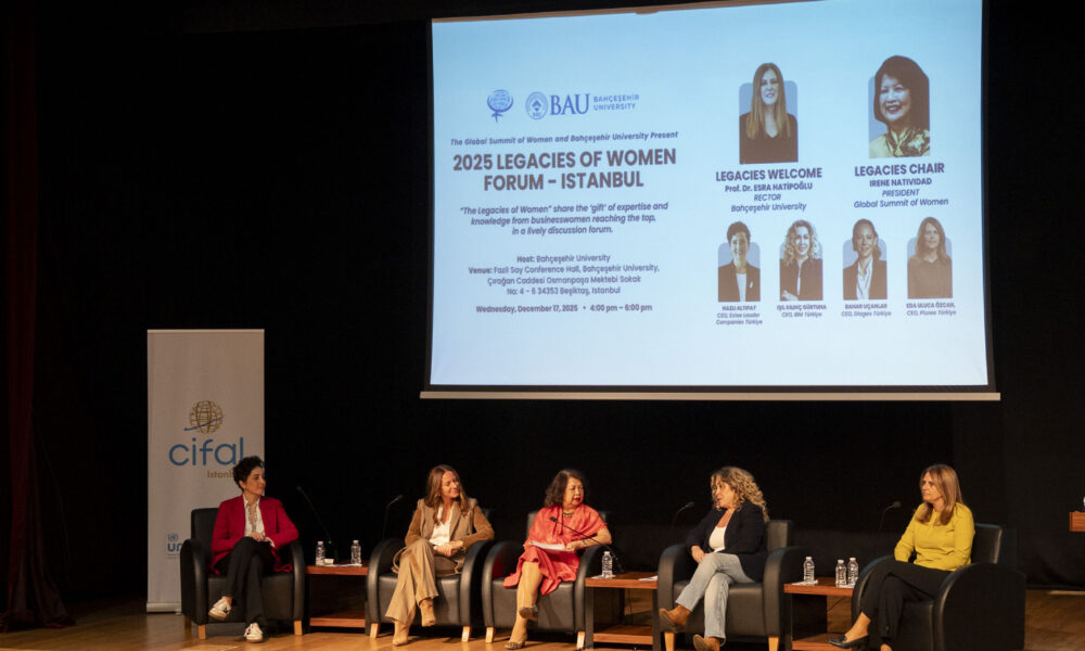 Bahçeşehir Üniversitesi’nde (BAU) düzenlenen ‘Legacies of Women Forum’, kadın liderliği ve eşitlik odağında gerçekleştirildi. BAU Rektörü Prof. Dr. Esra Hatipoğlu’nun açılış konuşmasını yaptığı foruma, Küresel Kadın Zirvesi Başkanı Irene Natividad, Estée Lauder Türkiye CEO’su Nazlı Altıpat, IBM Türkiye CEO’su Işıl Kılınç Gürtuna, Diageo Türkiye CEO’su Bahar Ucanlar, Pluxee Türkiye CEO’su Eda Uluca Özcan, öğrenciler ve akademisyenler katıldı.