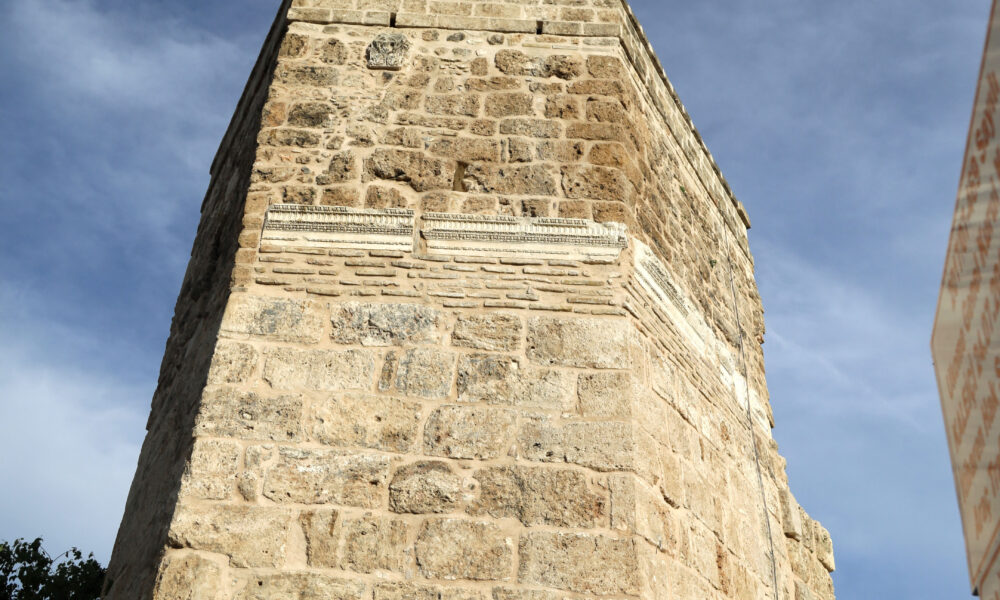 Kentin en önemli sembollerinden, Helenistik döneme tarihlenen burçlar üzerinde yer alan, kule kısmı Bizans döneminde yapılan ve 1900lü yılların başında 2nci Abdülhamid döneminde saat kulesi olarak inşa edilen yapının restorasyon çalışmasında dört bir tarafındaki saatlerin orijinal olmadığı ortaya çıktı, 1985 yılında çalınmış olabileceği değerlendirildi. Yerine takılan saatlerin plastik olduğu, bu saatleri tutturmak için kullanılan demir çerçevelerin de yıllar içerisinde ağırlıklarıyla tarihi taşları çatlattığı tespit edildi.