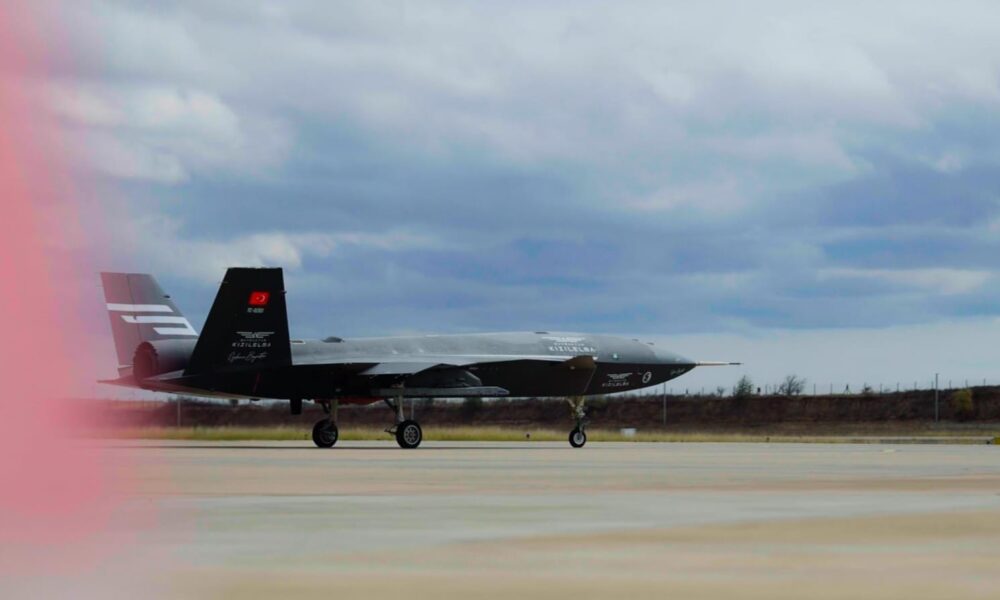 Türkiye'nin ilk insansız savaş uçağı Bayraktar Kızılelma, test programı kapsamında ilk mühimmat atış testini tam isabetle tamamladı. Fotoğraf: Ankara, (DHA)