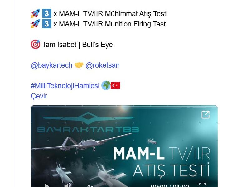 Baykar Yönetim Kurulu Başkanı Selçuk Bayraktar, test atış görüntüsünü NSosyal hesabından paylaşarak, Bayraktar TB3-MAM-L TV/IIR test atışının başarıyla gerçekleştirildiğini belirtti. ROKETSAN Genel Müdürü Murat İkinci de sosyal medya hesabından, “MAM-L IIR her zaman göreve hazır. Bayraktar TB3 ile gerçekleştirilen MAM-L IIR atış testlerinde hedefler tam isabetle vuruldu” ifadelerini kullandı.