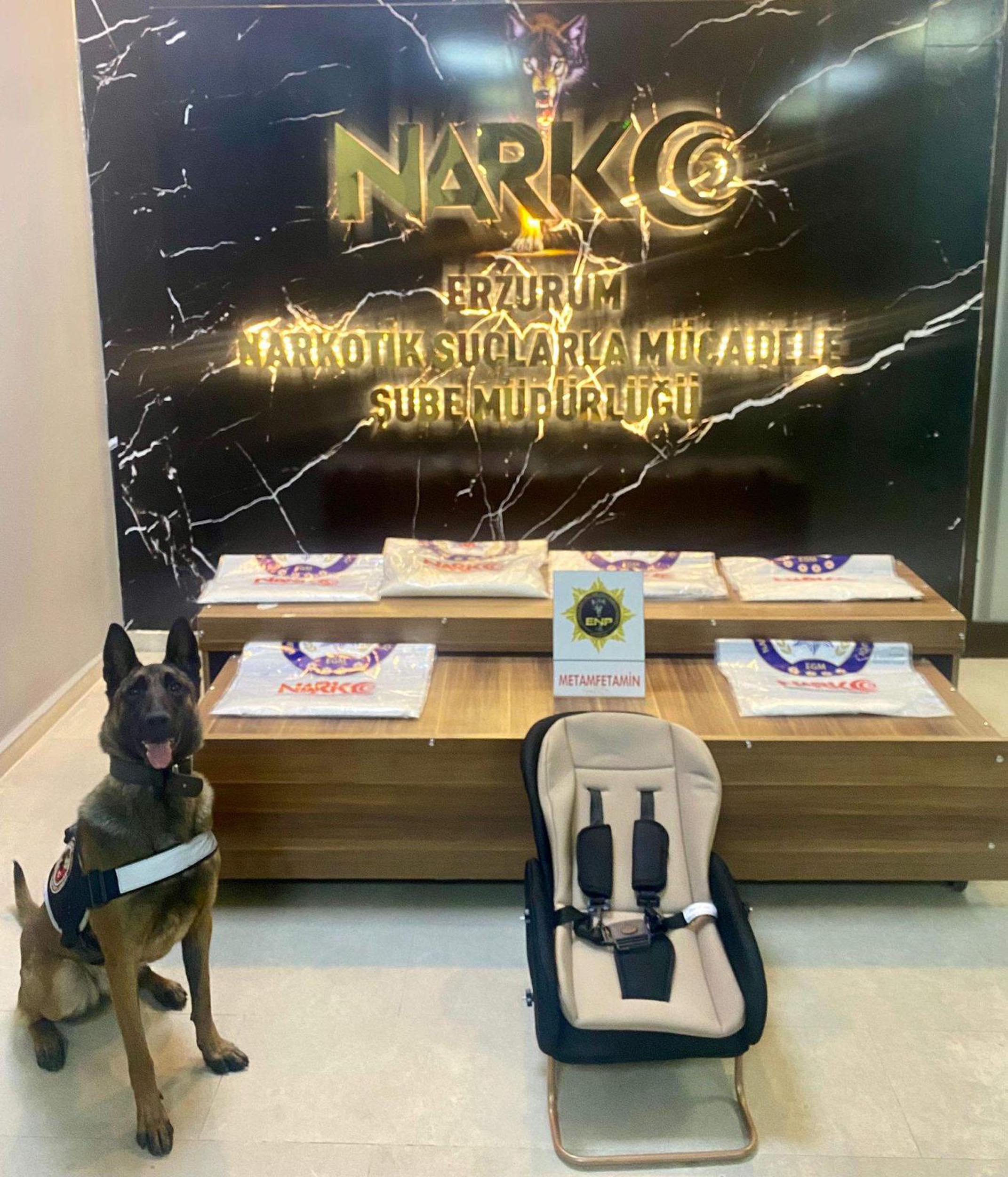 Erzurum Emniyet Müdürlüğü Narkotik Suçlarla Mücadele Şube Müdürlüğü ekipleri, yaptıkları aramada bebek arabası içinde zulalanmış 3 kilo 530 gram metamfetamin maddesi ele geçirdi. Uyuşturucu ile ilgili gözaltına alınan S.Ş. (28) ve O.B. (33) çıkarıldıkları mahkemede tutuklandı.