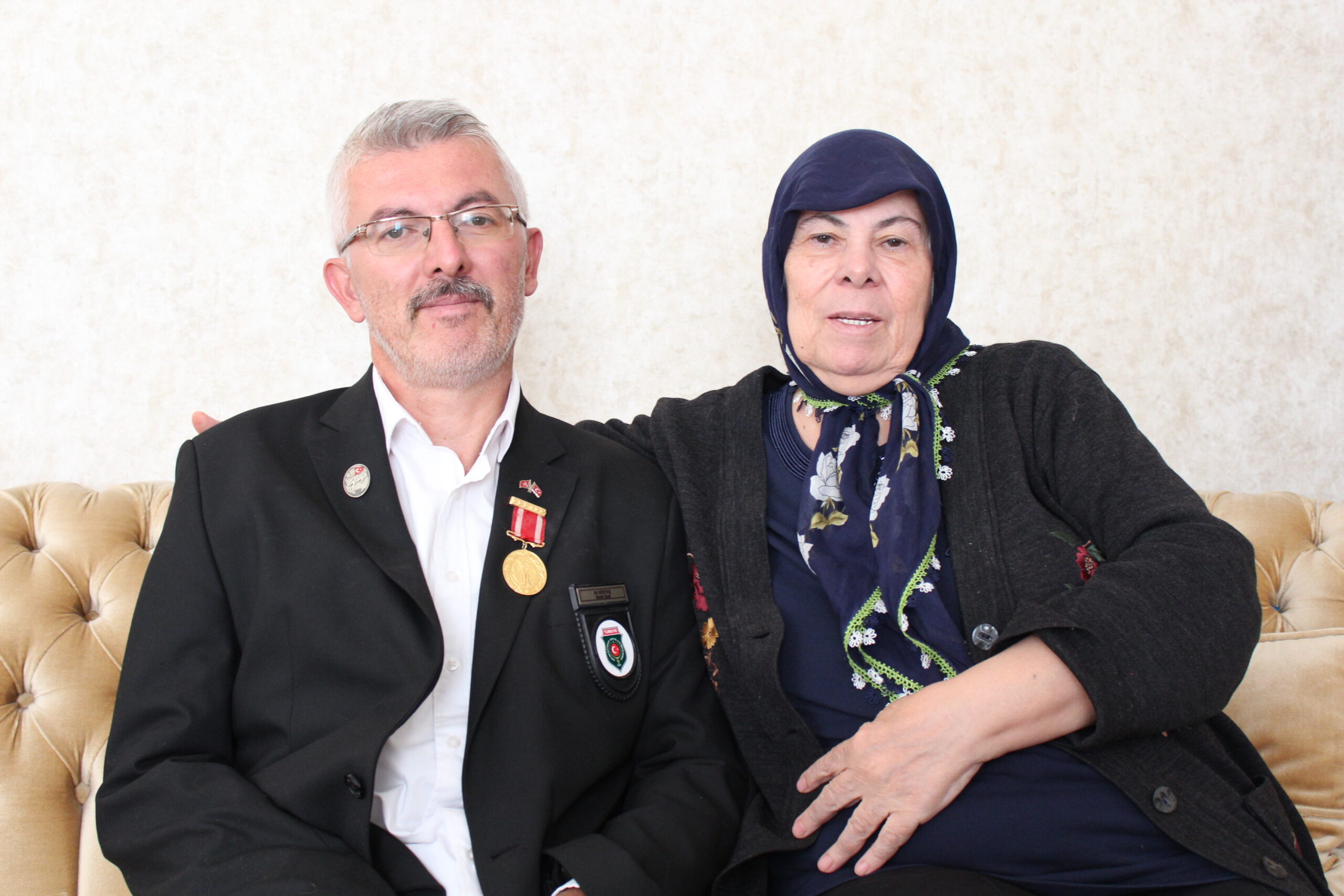 Oğlumun, acemi birliği Bilecik’ti. Usta birliğine ise Muş’a gitti. 5 aylık asker iken başından vurulup gazi oldu. Bir yıl sonra tekrar ameliyat oldu. 7 yıl hiç konuşmadı oğlum. Her şeyi bir çocuk gibi tekrar bana işaretle anlatırdı. Bende eline ne verirsem onun ismini söyledim. Kalemin bile ismini tekrardan söylettim. Suyun dahi ismini bilmiyordu ve onu da öğrettim. Yemeklerin ismini de söyledim. Hiçbir şey bilmiyordu ve adeta beyni sıfırlanmıştı. Bebek iken nasıl büyüttüysem, tekrardan oğlumu büyüttüm. Her şeyiyle bire bir kendim ilgilendim. Biraz hareketlenip, konuşmaya başlayınca, 2002 yılında evlendirdim.