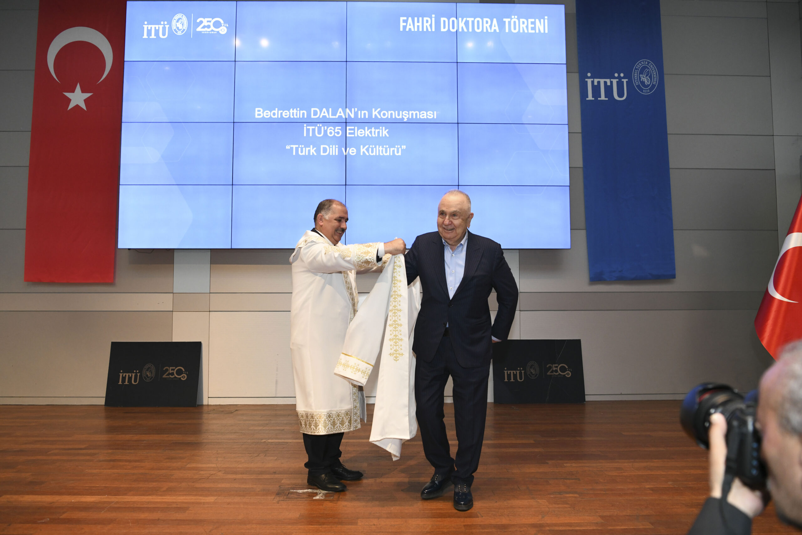Konuşmasının ardından Prof. Dr. Koyuncu, İTÜ Senatosu tarafından alınan karar gereği ‘Ülkemizde raylı sistemler, trafik, deniz taşımacılığı, çevre kirliliğinin önlenmesi, şehircilik ve eğitim gibi alanlarda yaptığı öncü ve nitelikli çalışmalar nedeniyle’ verilen Fahri Doktora diplomasını Bedrettin Dalan’a takdim etti. Fahri doktora beratının ardından Bedrettin Dalan teşekkürlerini sunarak bu unvanın verilmesi dolayısıyla yaşadığı mutluluk ve gururu ifade etti.