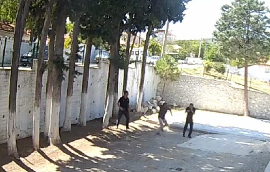 Olay, dün Kale ilçesinde Kale Ortaokulu bahçesinde meydana geldi. Kale Belediyesi Zabıta Müdürü F.T., önceki sabah zabıta personeli ile toplantı yaptı. F.T., toplantıda Kale Belediye Başkanı Erkan Haylanın kendilerinden okul bahçesine kilit parke taşı döşemelerini istediğini söyledi. Bunun üzerine görevlendirildikleri okula giden zabıta personelinden Halil Sait Kocagümüş (34) ile Ceyhun Çabuk (42) sağlık problemlerini gerekçe göstererek çalışmadı. Dün tekrar okula giden iki zabıta memuru yine çalışmayı reddedip, okul bahçesinde bekledi. 15 dakika sonra okul bahçesine elinde sopayla gelen Başkan Hayla, zabıta memurlarını darbetti. O anlar okulun güvenlik kameralarına yansıdı. Görüntülerde ağacın altında bekleyen iki zabıta memurunun Başkan Haylanın geldiğini görünce ellerindeki bardakları yere bıraktığı görüldü. Görüntülerde ayrıca Haylanın, üzerlerine koşarak gittiği iki zabıta personelinden birinin sırtına sopayla vurması yer aldı. Zabıta memurları darp raporu alıp, Erkan Hayladan şikayetçi oldu.