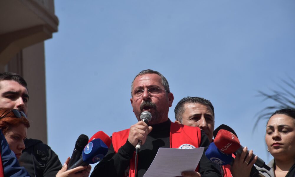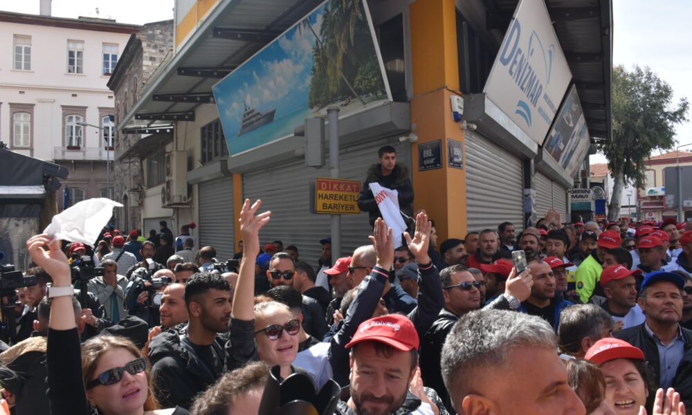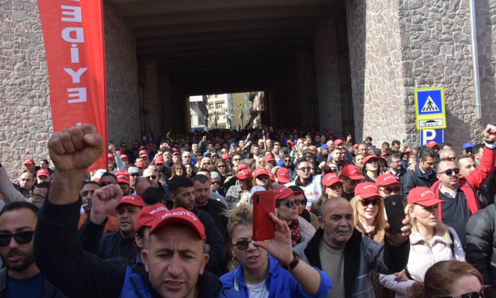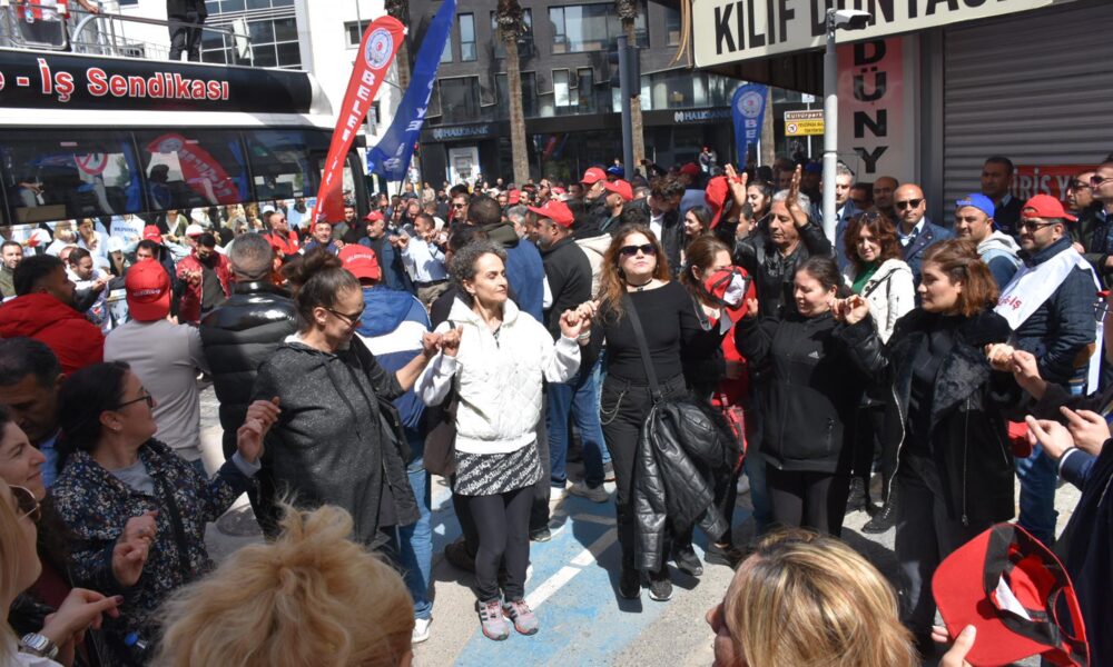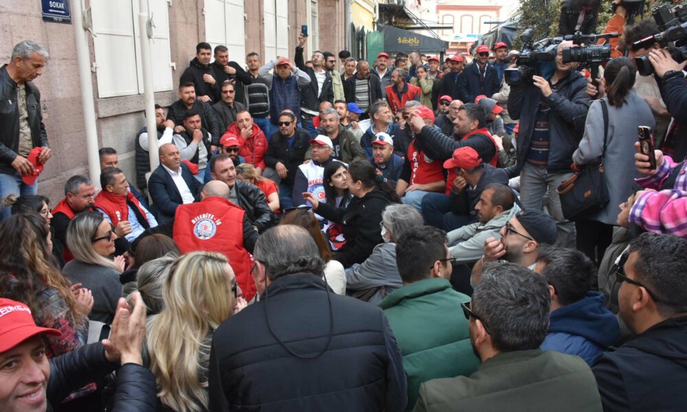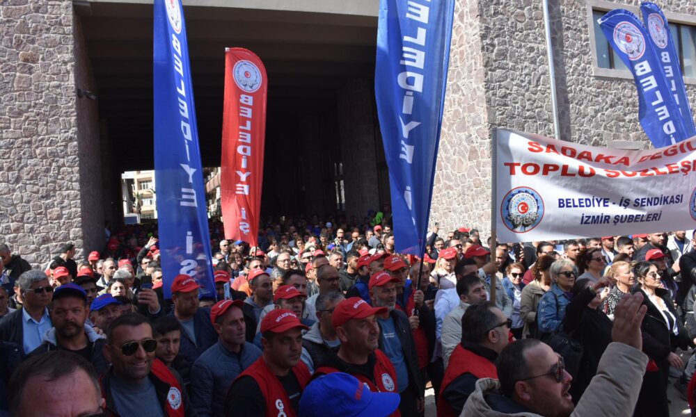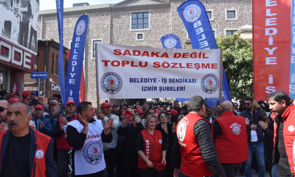 İZMİR Büyükşehir Belediyesi bünyesinde çalışan Belediye İş Sendikası üyesi binlerce işçi, toplu iş sözleşme görüşmelerinden sonuç alınamadığı gerekçesiyle yürüyüş yapıp, oturma eylemi gerçekleştirdi.İzmir Büyükşehir Belediyesinin İZSU, İZDOĞA, İZBETON ve İZULAŞ şirketlerinde örgütlü Türk İşe bağlı Belediye İş Sendikası ile işveren arasında ocak ayından bu yana süren ve 6 bin işçiyi ilgilendiren toplu iş sözleşmesi görüşmelerinde anlaşma sağlanamadı. Sendikaya üye işçiler, kısa süre önce yarım gün, ardından da 2 saat iş bıraktı. Sonrasında taraflar tekrar masaya oturdu ancak sonuç çıkmadı. Bunun üzerine Belediye İş Sendikası yeniden eylem kararı aldı. İzmir Büyükşehir Belediyesinin çeşitli birimlerinde görev yapan binlerce işçi, Konak Pier önünde toplandı. Ardından belediye binasına yürüyüşe geçti. Müzikler ve türküler eşliğinde halaylar çeken kalabalık, sadaka değil toplu sözleşme, direne direne kazanacağız, hak, hukuk adalet, zafer emekçinin olacak sloganları atarak belediye önüne geldi.ALIN TERİMİZİN KARŞILIĞINI ALMAK İSTİYORUZBasın açıklaması yapan Belediye İş Sendikası 2 Nolu Şube Başkanı Savaş Atalay, “Bizler su, kanal, arıtma, otobüs hizmeti, asfalt, mezarlık ve itfaiye hizmetlerini sabahın kör karanlığından gece yarılarına, yaz demeden kış demeden günün 24 saati durmaksızın yerine getiren emekçileriz. Bizler, hizmetlerin bir gün dahi aksamaması için görev ve sorumluluk bilinciyle 7 gün 24 saat var gücüyle çalışan emekçileriz. İzmirin her evinde, her sokağında, her caddesinde emekçilerin alın teri ve emeği var. Emekçiler, ülkemizin, belediyemizin her sıkıntılı döneminde kurumların daha verimli çalışması için var gücümüzle çaba harcayan, fedakarlık yapanlardır. Ancak bu kadar önemli ve vazgeçilmez olan bu hizmetleri yapan bizler, yaşanan ekonomik sıkıntılar ve enflasyon altında eziliyoruz. Belediye yönetimi sesimizi duymuyor, yaşadığımız yoksulluğu, geçim sıkıntısını görmüyor. Belediye yönetiminin sorunlarımıza karşı duyarsızlığı karşısında öfkeleniyoruz. Biz emekçiler, huzur içinde çalışmak, alın terimizin karşılığını almak istiyoruz” dedi. Ardından kalabalık, belediye önüne giderek oturma eylemi başlattı.