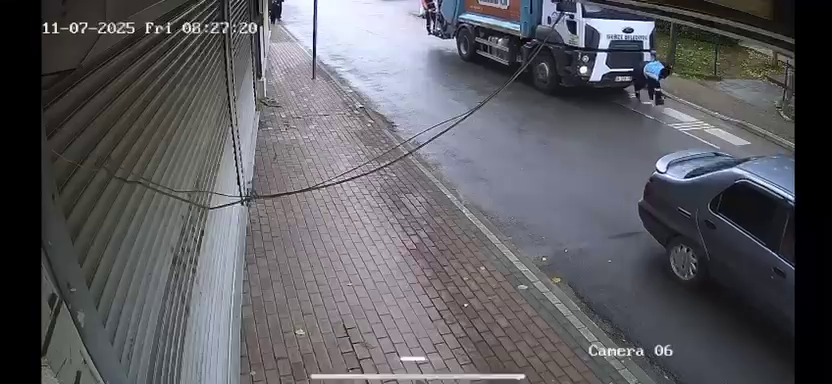 Belediye işçisinin çöp kamyonunun altında kalıp öldüğü kaza kamerada