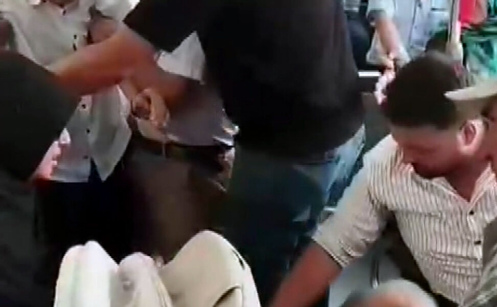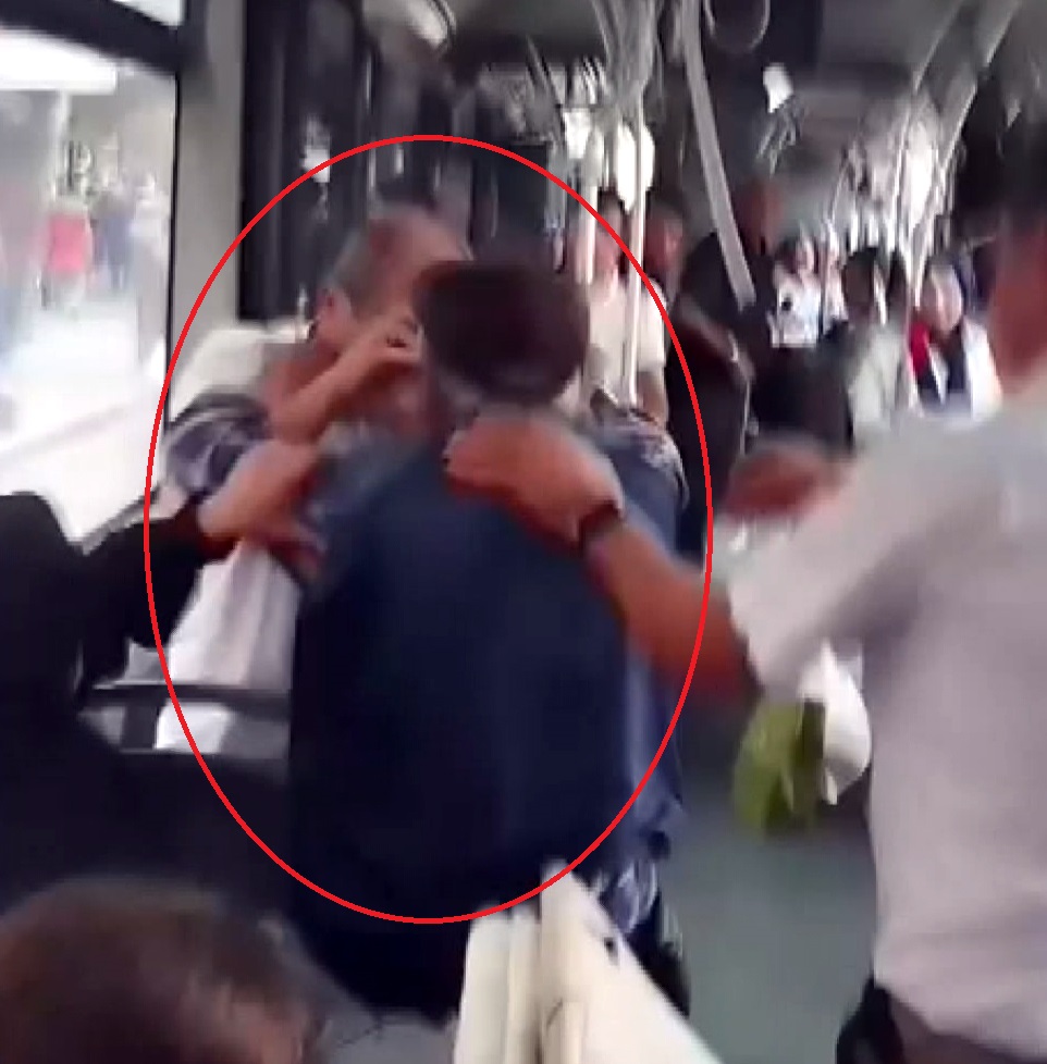 • Ankara'da belediye otobüsüne önce binmek için tartışan iki kişinin otobüs içerisindeki yumruklu kavgası kameraya yansıdı. Fotoğraf: Ankara, (DHA)