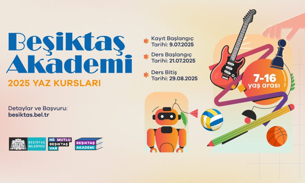 Yaz aylarının başlamasıyla Beşiktaş’taki açık alan etkinlikleri ve atölyeler hız kazanırken, şimdi de Beşiktaş Akademi bünyesinde çocuklar ve gençler için yaz kursları düzenleniyor. Ücretsiz olarak sunulacak kurs programında; keman, gitar, piyano, resim, satranç, modern dans, yaratıcı drama ve robotik kodlama gibi kültür-sanat ve bilim branşlarının yanı sıra yüzme, tenis, basketbol ve voleybol gibi spor branşları da yer alıyor.