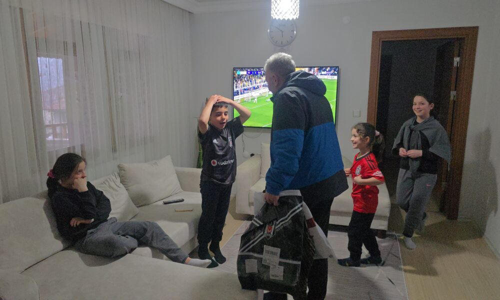 Düzce’de Muhammed Emir Sönmez’in (9), kendi el yazısı ile üzerine siyah-beyazlı futbolcu Vincent Aboubakar’ın adını yazarak Beşiktaş formasına benzetmeye çalıştığı tişörtü ile Cuma namazı kıldığı sırada çekilen fotoğraf sosyal medyada yayıldı. Beşiktaş taraftarı Ali Özmen, Düzce Beşiktaşlılar Derneği ve iş insanlarından topladığı forma, şort ve birçok Beşiktaş ürününü Muhammed Emir Sönmez’e hediye ederek sürpriz yaptı.Düzce’nin Boğaziçi beldesine bağlı Şekerpınar Mahallesi’nde oturan Muhammed Emir Sönmez, kendi el yazısı ile üzerine siyah-beyazlı futbolcu Aboubakar’ın adını yazarak taraftarı olduğu Beşiktaş’ın formasına benzetmeye çalıştığı tişörtüyle geçen hafta Cuma namazına gitti. Camideki vatandaşlardan biri namaz kılan çocuğun fotoğrafını çekip sosyal medyada paylaştı. Fotoğraf sosyal medyada yayıldı. Fotoğrafı gören Düzce’de bir fabrikada işçi olarak çalışan Beşiktaş taraftarı Ali Özmen, çocuğun da Düzce’de yaşadığını öğrendi. Özmen, Düzce Beşiktaşlılar Derneği ve iş insanlarından topladığı Beşiktaş’ın forma, şort, atkı ve bazı diğer ürünlerini evine giderek çocuğa hediye ederek sürpriz yaptı. Muhammed Emir Sönmez, sürpriz karşısında sevinçten ağladı. Ali Özmen, “Düzce ufak bir il, sevdiğimiz insanlara ulaşarak ‘Bu fotoğrafın kime ait olduğunu bulabilir misiniz?’ dedim. Bu beldede oturan arkadaşlarımız fotoğraftaki çocuğun Muhammed Emir Sönmez olduğunu bana ilettiler. Ben de bu çocuğun kalbine dokunmam lazım dedim. Aile ile hiçbir bağlantımız yoktu. Babasını tanımıyorum, annesini tanımıyorum ya da hangi işle uğraştıklarını bilmiyorum. Ama benim odak noktam Emir’di ve ulaştık. Şimdi Emirin yanındayız onun mutluluğuna şahit olduk. Kendi gücüm nispetinde birkaç ürün aldım, sevdiğimiz ağabeylerimiz, iş insanları sayesinde çeşitli hediyeler aldık. Düzce Beşiktaşlılar Derneği de destek oldu. Esnaf kardeşlerimizle arkadaşlarımız destek oldu. Bizim yaptığımız bu küçük hediyelerin maddi olarak bir anlamı yok. Biz onun kalbine dokunmak istedik” dedi.Muhammed Emir Sönmez ise sürpriz karşısında çok mutlu olduğunu ifade ederek, “Aboubakar yetenekli, iyi futbolcu. Beşikten, mezara Beşiktaşlıyım. Beşiktaş maçlarını tekrar tekrar izliyorum. Bir izlediğim maçı bir kez daha izlemek çok hoşuma gidiyor. Yenilsek de yensek de izlemek hoşuma gidiyor. Hediyeleri görünce çok heyecanlandım. Çok mutluyum. Çok teşekkür ederim. En büyük hayalim Abuobakar ve Beşiktaşlı futbolcular ile görüşmek” diye konuştu.Anne Kıymet Sönmez, 4 çocuğu olduğu ve evde sadece Muhammed Emir’in Beşiktaş taraftarı olduğunu belirterek “4 çocuk annesiyim. En fanatik Muhammed Emir. Diğerleri pek ilgilenmiyorlar. Ben de futbolu seviyorum. Evde sadece Muhammed Emir Beşiktaş’ı tutuyor. Ben Galatasaray’ı tutuyorum. Hergün sosyal medyadan maçları tekrar tekrar izliyor. Ben de futbolcuların adını öğrendim. Ama dersleri de çok iyi” şeklinde konuştu. GÖRÜNTÜ DÖKÜMÜ:-Ali Özmen’in eve girerken görüntüsü-Hediyeleri gören Muhammed Emir’in heyecanlandığı görüntüler-Muhammed Emir’in hediyeleri açarken görüntüsü-Muhammed Emir’in Beşiktaş maçlarını izlerken görüntüsü-Ali Özmen ile röportaj-Muhammed Emir ile röportaj-Anne Kıymet Sönmez ile röportaj -Detaylar