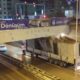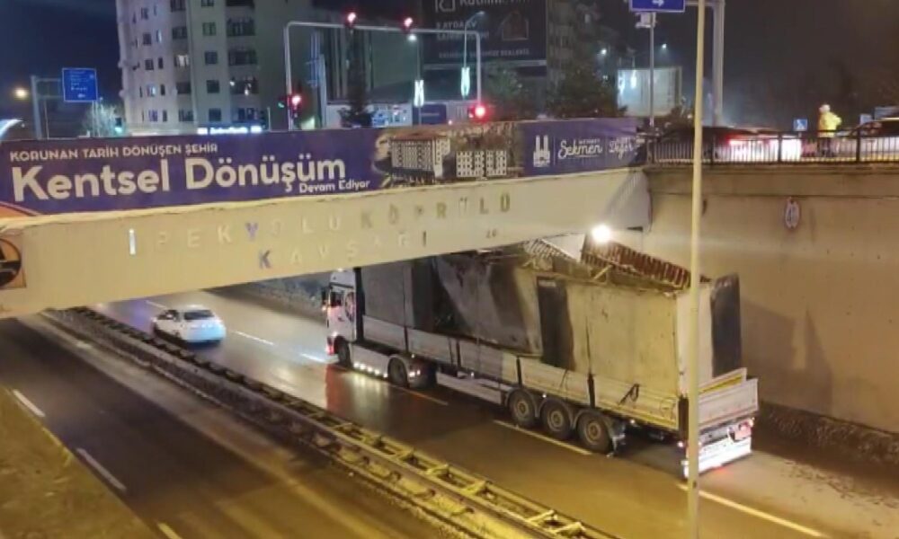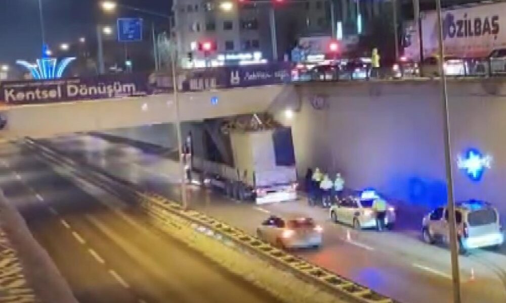 Beton blok taşıyan TIR, alt geçitte sıkıştı