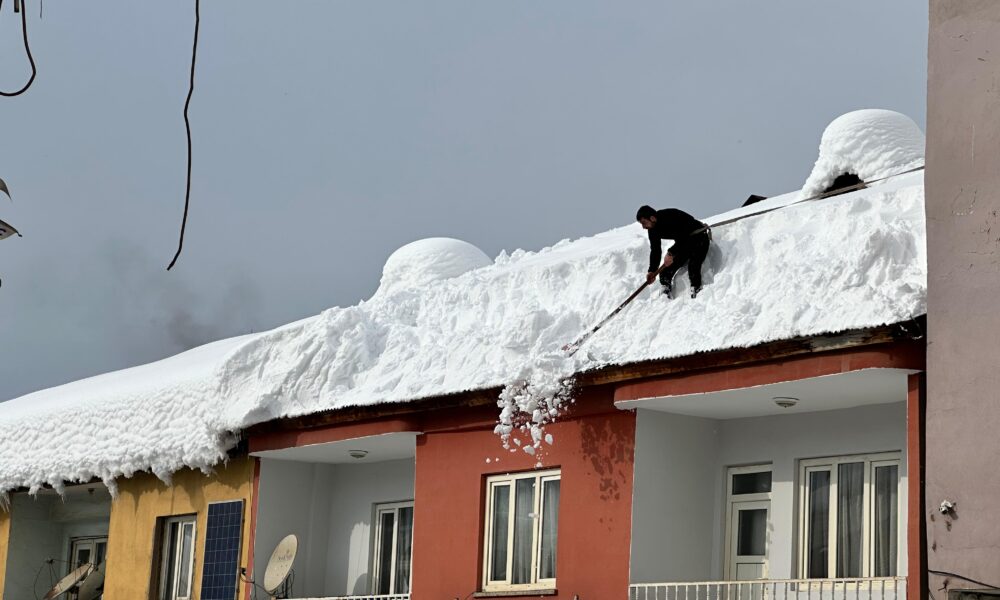 Beytüşşebap’ta çatılarda biriken karlar temizleniyor