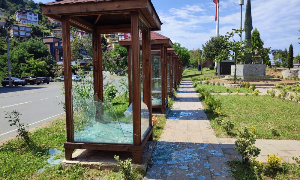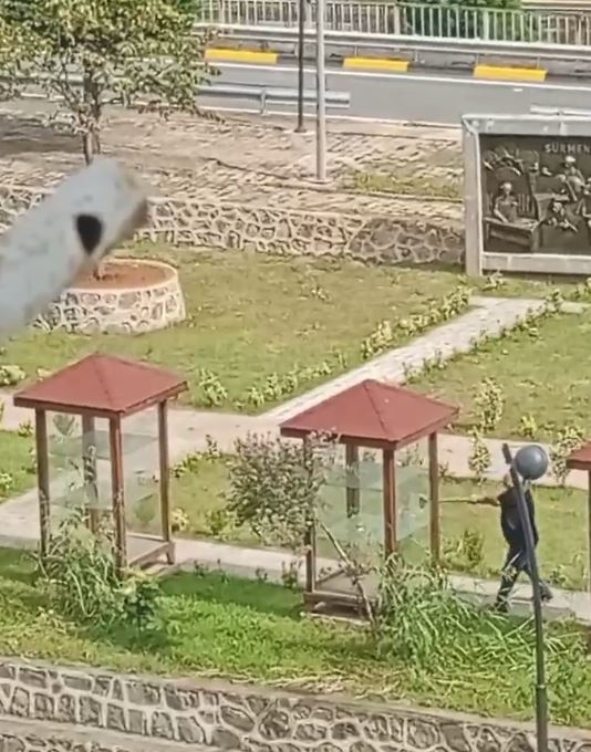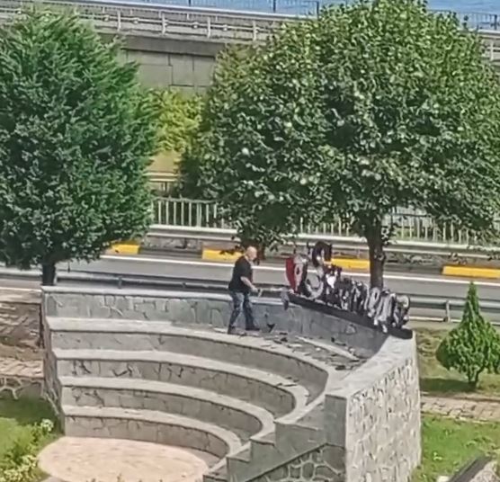 Olay, sabah saatlerinde Sürmene ilçesindeki sahilde yer alan Bıçak Tanıtım Parkında meydana geldi. Parka gelen E.C., bilinmeyen nedenle elindeki balyozla Sürmene yazılı elektrikli tabela ve hediyelik eşya ürünlerinin sergilendiği vitrin camlarını balyozla kırdı. İhbarla olay yerine gelen polis ekipleri, şüpheliyi gözaltına aldı. Balyozlu saldırı, cep telefonu kamerasına da yansıdı.