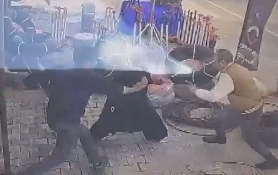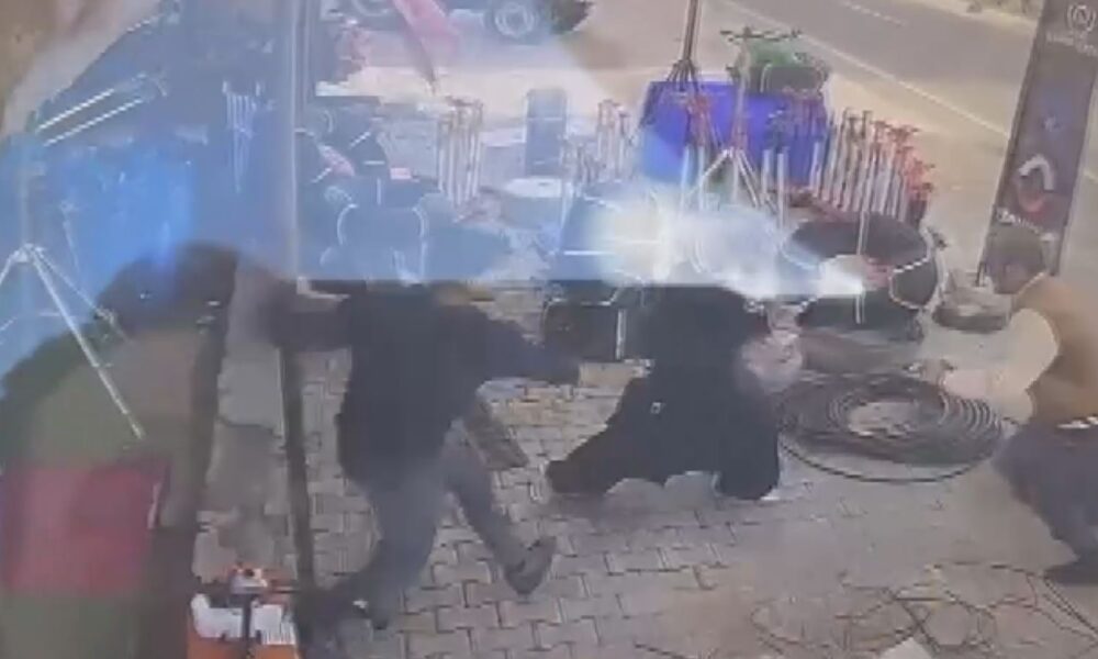 Olayla ilgili soruşturma sürerken, saldırı girişimi iş yerinin güvenlik kamerasına yansıdı.