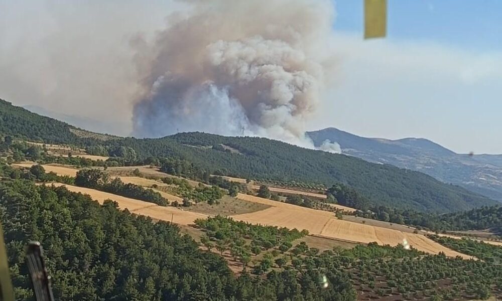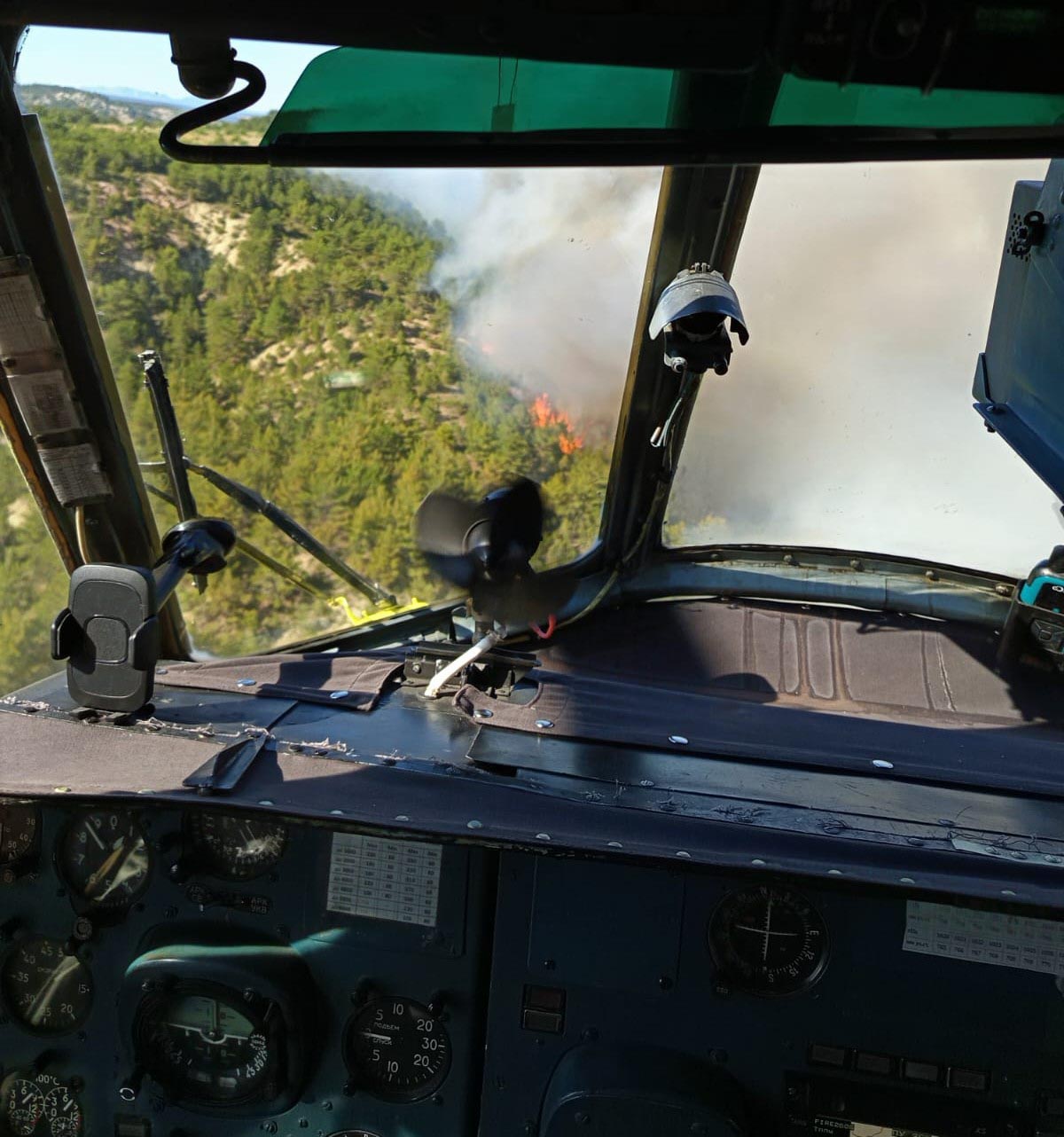 Bilecik’in Gölpazarı ilçesindeki ormanda yangın çıktı. Ekiplerin havadan ve karadan alevlere müdahalesi sürüyor. Fotoğraf: Bilecik,(DHA)