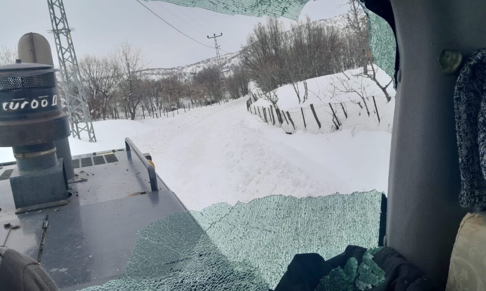 Bingöl’de karla mücadele ekibine saldırı; iş makinesinin camları kırıldı