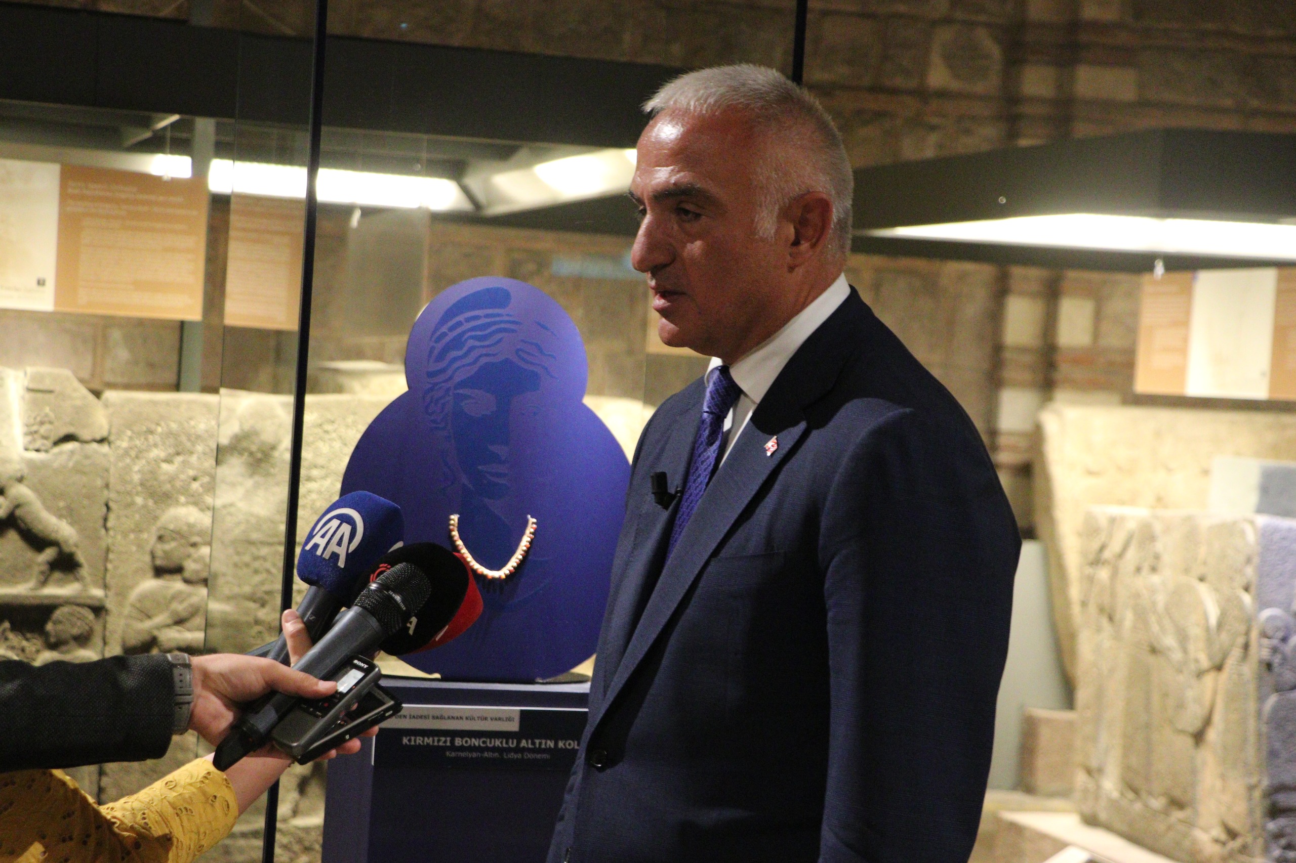 Bakan Ersoy, Ankara Kültür Yolu Festivali kapsamında Anadolu Medeniyetleri Müzesinde düzenlenen ‘Kaçış Yok’ isimli kültür varlığı kaçakçılığıyla mücadele sergisi ile Yeryüzü Rüyaları: Anadolu sergisini ziyaret etti. Bakan Ersoy, Manisadaki Bintepeler arkeolojik kazı alanında çıkarılıp, yasa dışı yollarla Amerikaya kaçırılan ve Boston Güzel Sanatlar Müzesi tarafından Türkiyeye iade edilen altın kolyenin önünde açıklama yaptı. Bakan Ersoy, söz konusu kolyenin 3 Eylül tarihinde New York Başkonsolosluğuna teslim edildiğini belirtti. Sergide Amerika ve İsviçre’den getirilen ve kolluk kuvvetlerince ülke sınırları içinde yakalanan eserlerden oluştuğunu ifade eden Ersoy, “Geçen sene ilk kez UNESCO ile iş birliğiyle gerçekleştirmiştik. Aslında vatandaşlarımız açısından farkındalığın artmasını istiyoruz. Yani kaçakçılıkla mücadelede aslında en önemli silahımız vatandaşımızın etkin bir şekilde mücadeleye dahil olması. Defineciyi yıldırmak istiyorsanız alıcıyı yıldırmanız gerekiyor. Buradaki eserler 1970li yıllarda Amerikaya getiriliyor. Boston Güzel Sanatlar Müzesi tarafından sergileniyor. Müze yetkilileri Anadolu kökenli olduğundan şüpheleniyorlar ve bize bilgi veriyorlar. Size başvurulması eseri alacağınız anlamına gelmiyor. Siz ülke olarak bunun Anadolu kökenli olduğunu, izinsiz çıkarıldığını ispatla yükümlüsünüz. Kaçakçılıkla Mücadele Daire Başkanlığımız bu yolda çok etkili performans gösteriyor. Hemen hemen yüzde 100e yakın başarıyla Anadolu kökenli olduğunu ve izinsiz çıkarıldığını ispat edip ülkemize getirmeyi başarıyoruz” dedi.